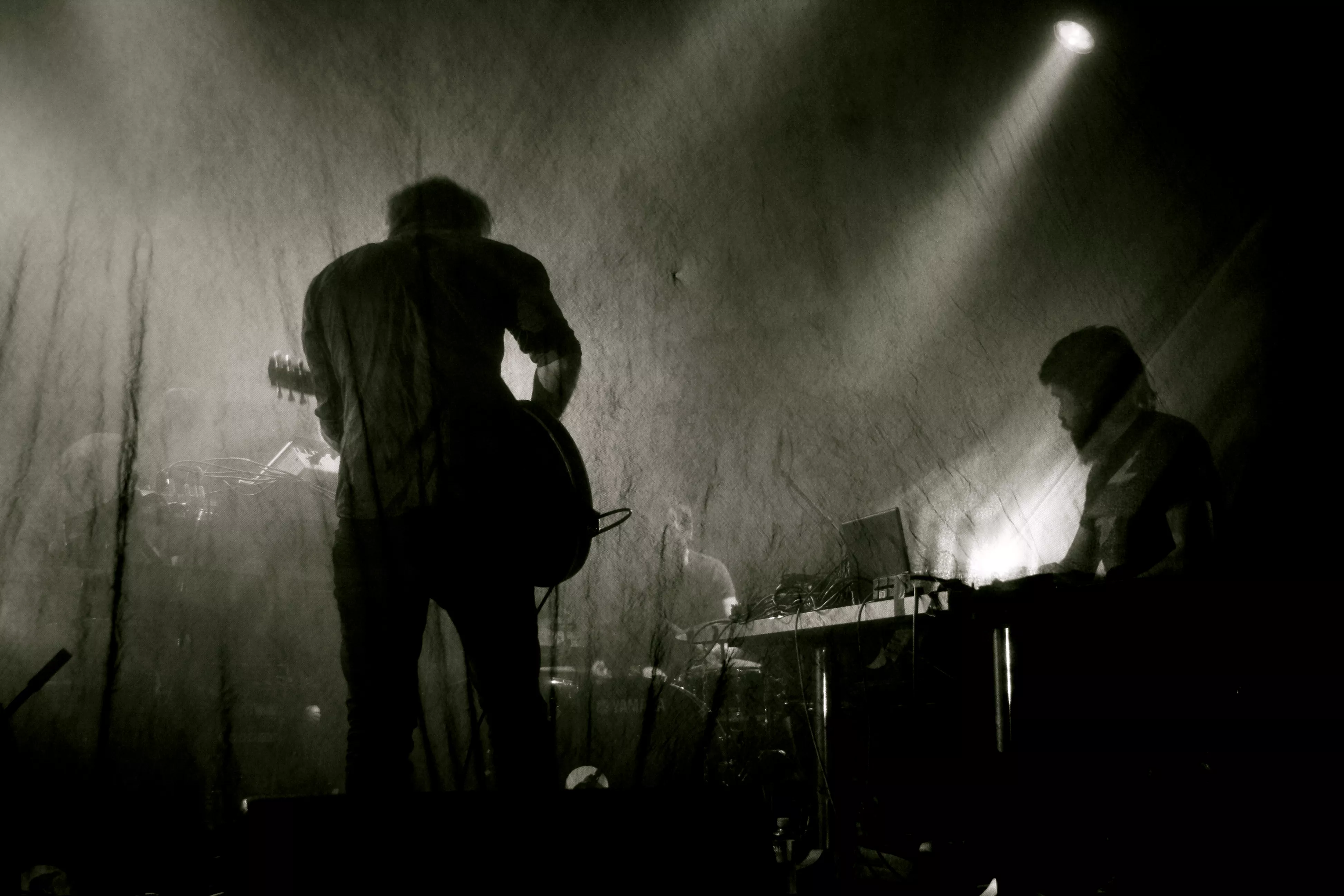 Det var et tilbakelent publikum som sto og ventet på Supersilent denne torsdagskvelden på Folken i Stavanger. Gruppen som ble dannet i Bergen i 1997 var kveldens hovedband på NuMusic, men hadde likevel ikke fylt opp gulvet foran scenen. De fire herrene står med ansiktene mot hverandre bak et nett