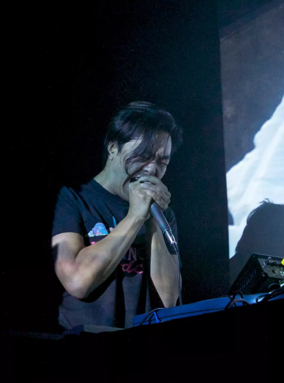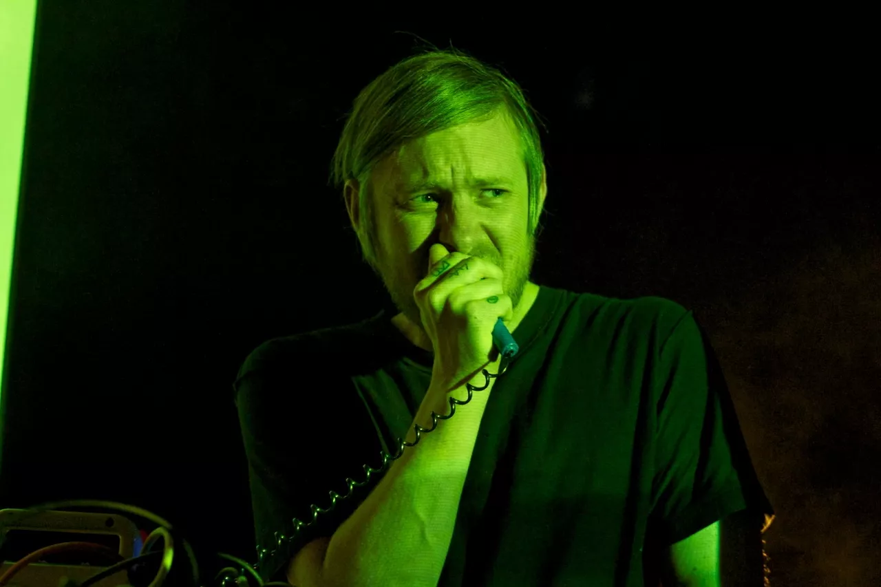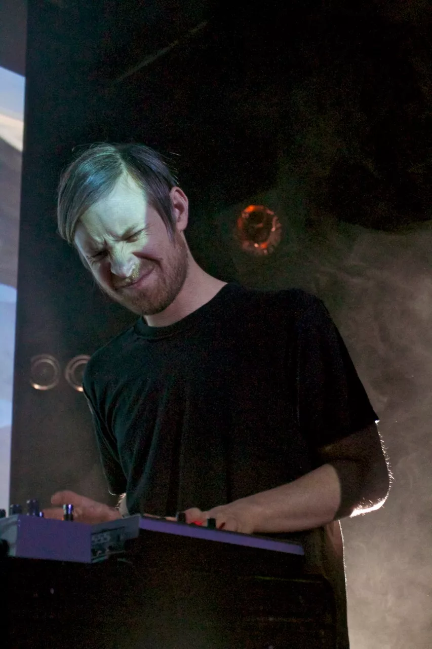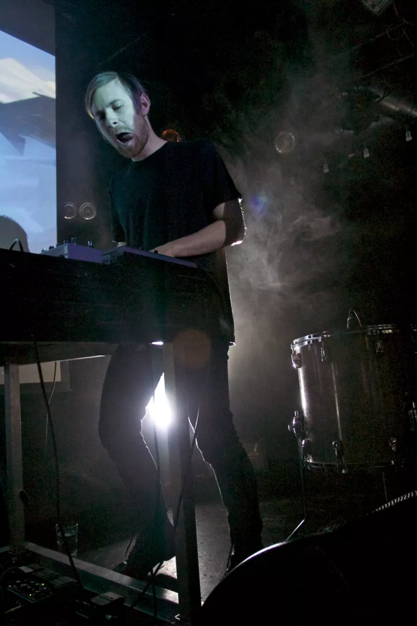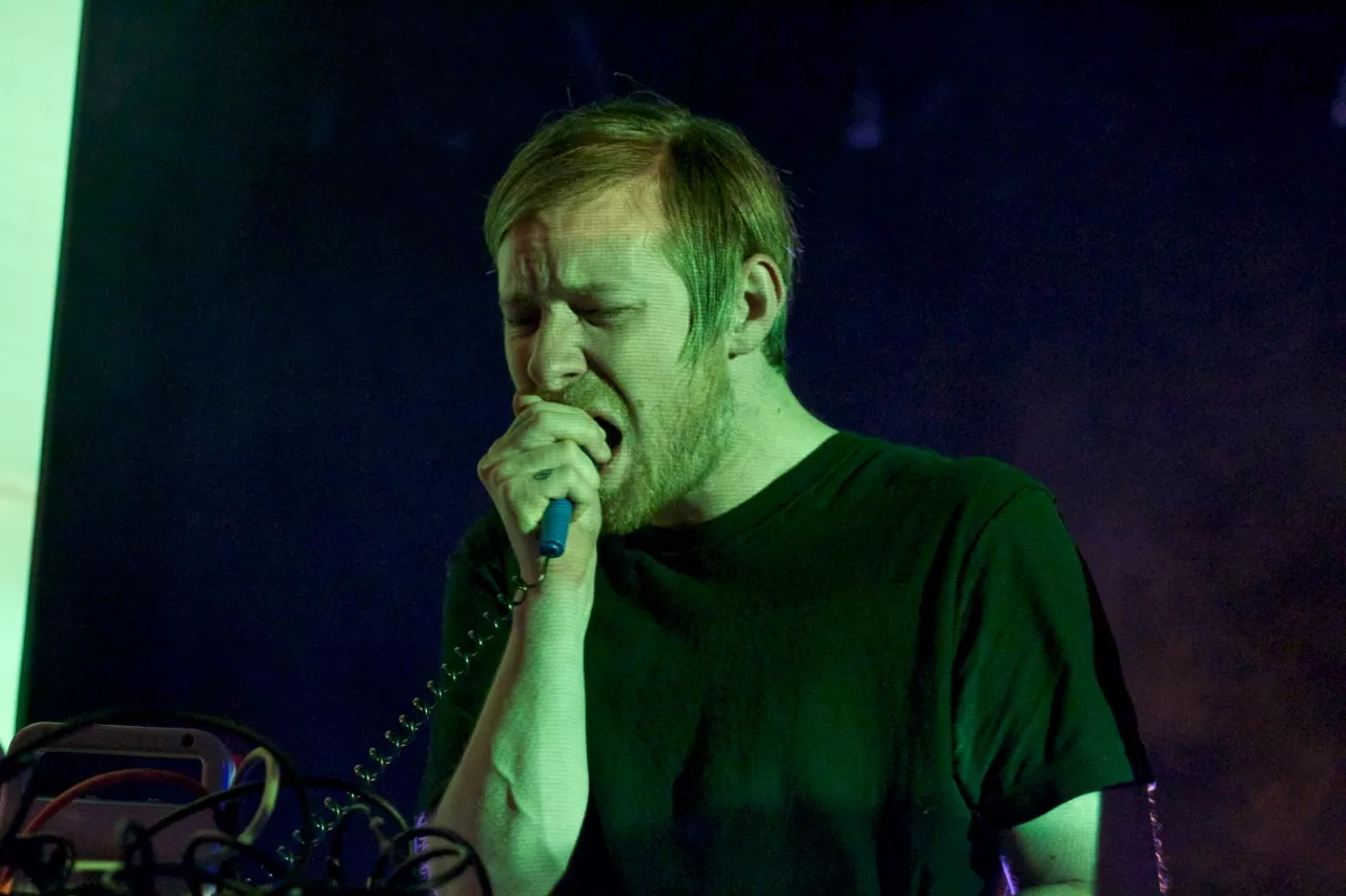 Andrew Hung og Benjamin John, støyduoen fra Bristol i England, går på scenen på John Dee litt over halv ti. Suggererende trommerytmer og låten Brainfreeze fra deres nyeste album, Slow Focus, starter det hele.