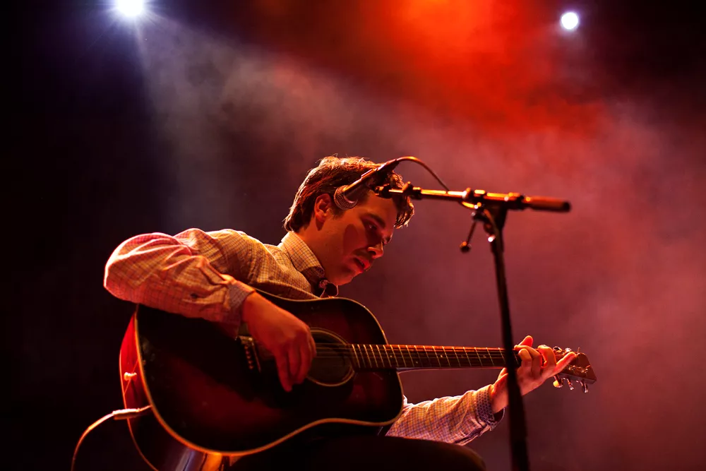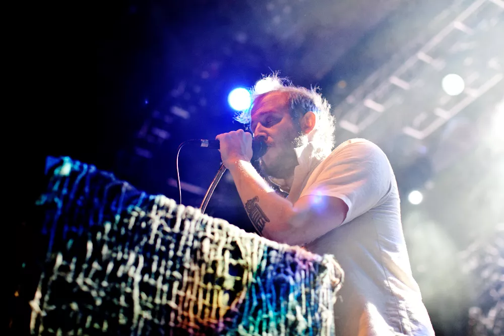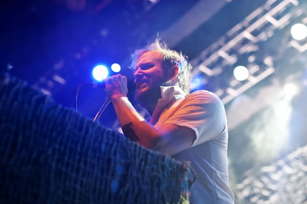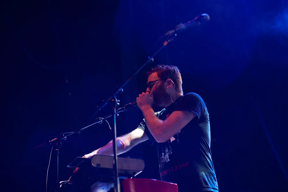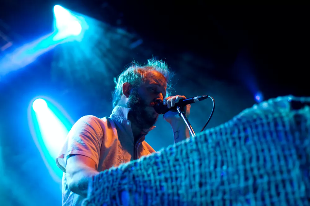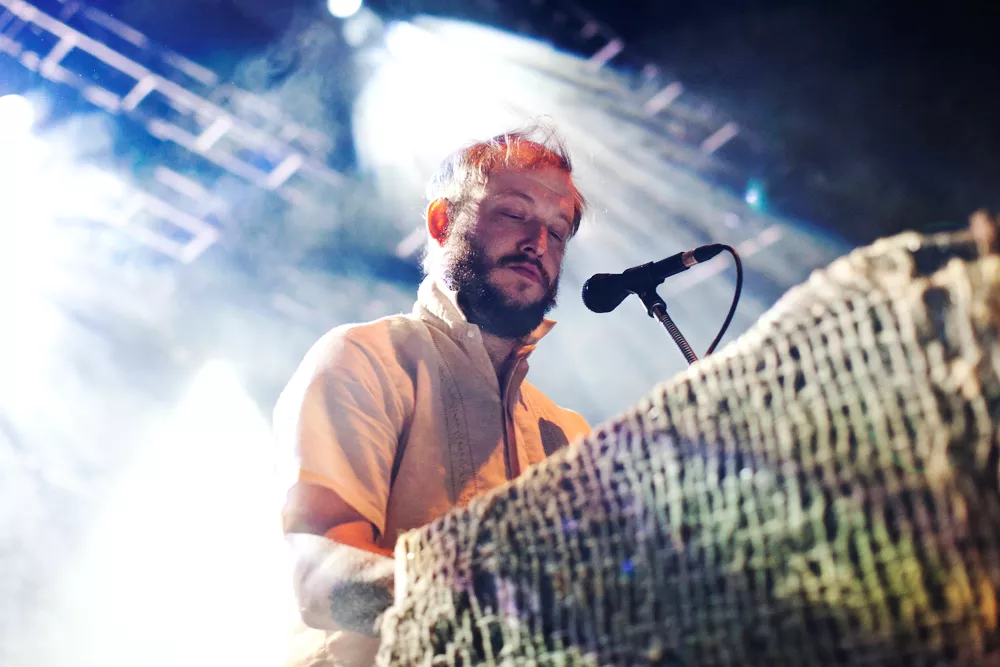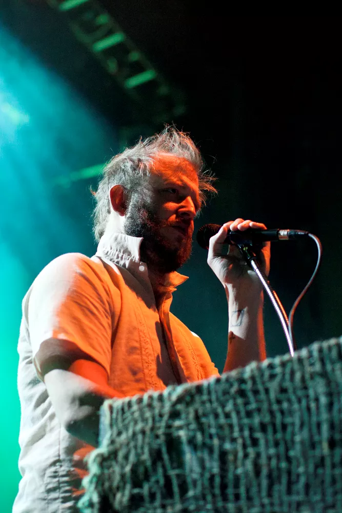 Ganske nøyaktig klokka ti kommer Thomas Wincek ut på scenen alene, går bort til synthstasjonen sin og begynner å spille orgeldronene i starten av låten Tinderays. Resten av bandet, seks stykker, kommer litt etter, kraftige trommelyder, Justin Vernons stemme og et etter hvert mektig lydbilde