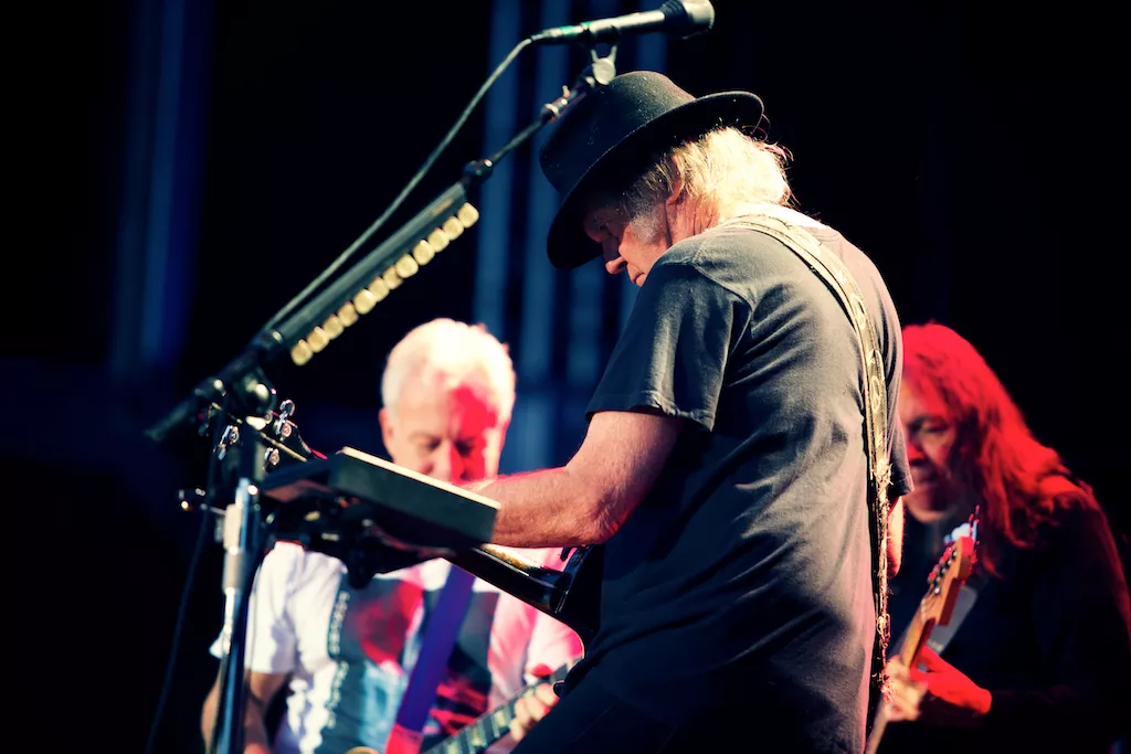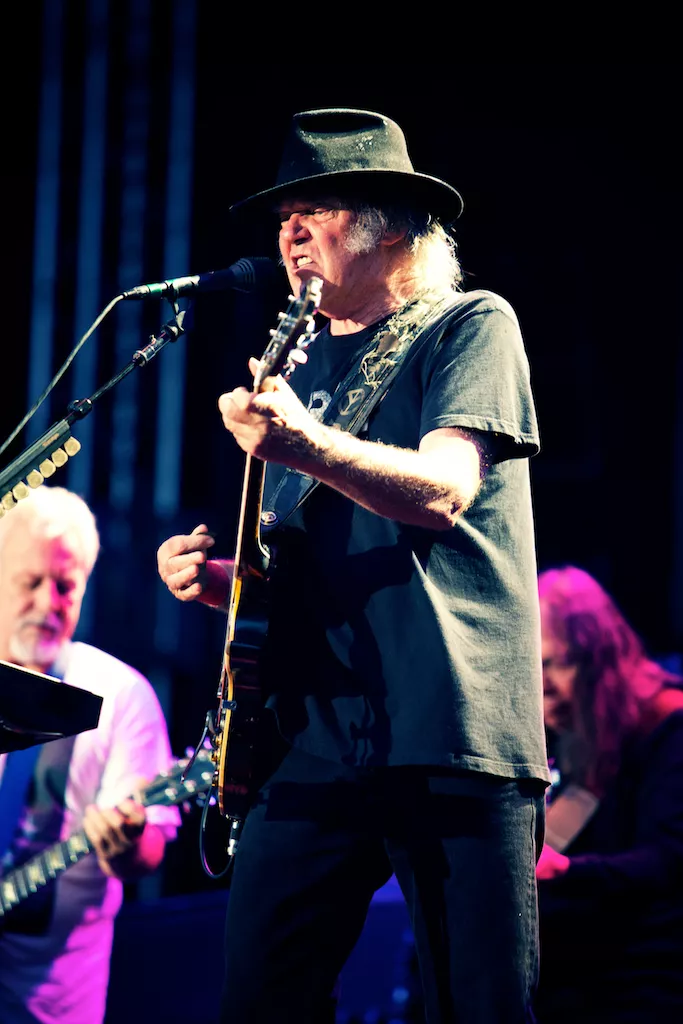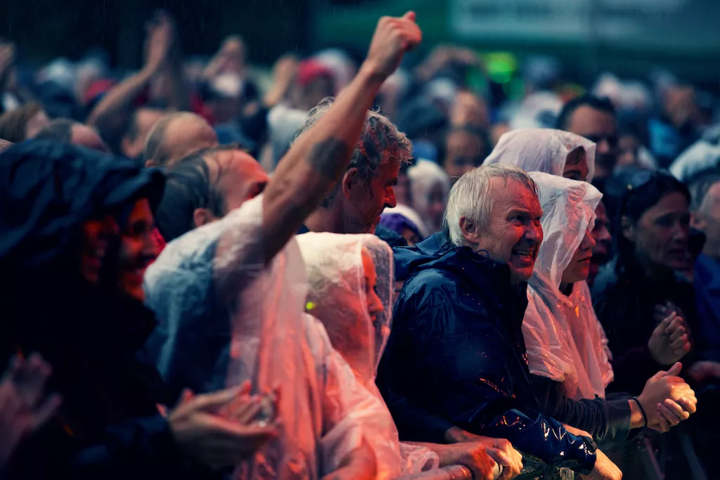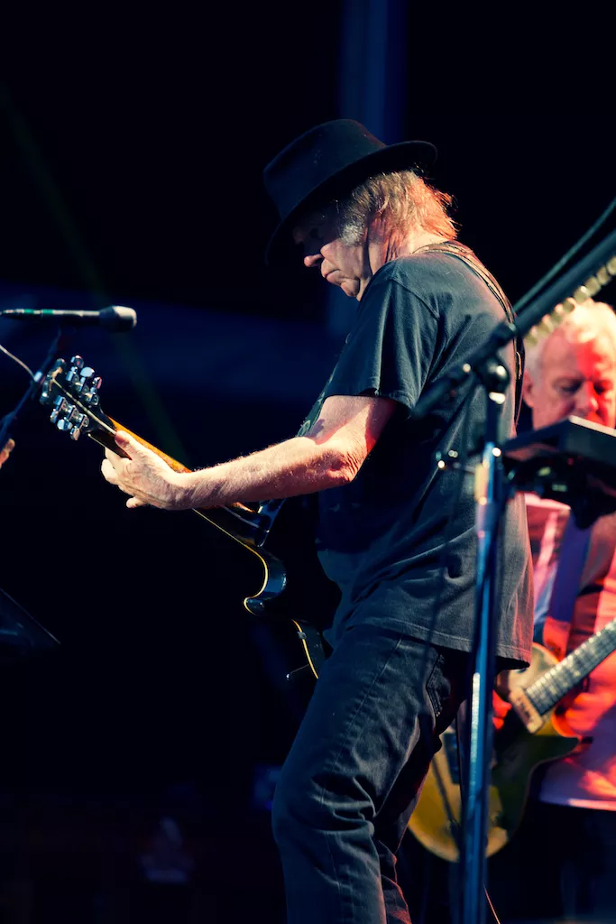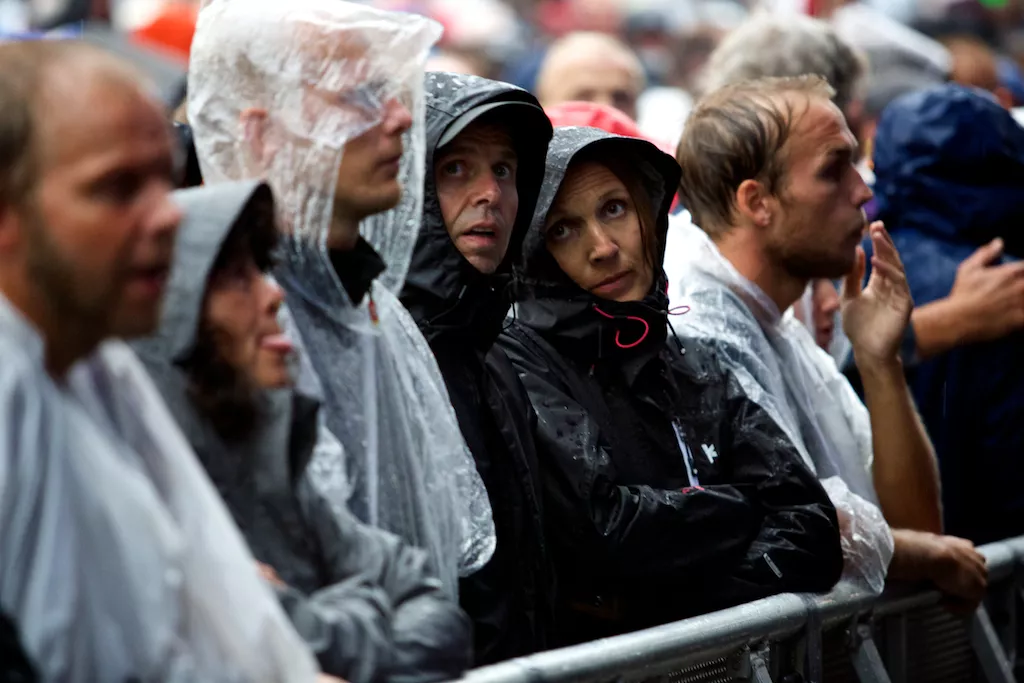 De som hadde valgt å stole på værvarselet fikk seg (bokstavelig talt) en kalddusj på Bergenhus Festning fredag kveld. Allerede under oppvarmingsbandet The Waterboys høljet det ned, og det skulle ikke gi seg før et godt stykke ut i konserten til kveldens hovedattraksjon, Neil Young & Crazy Horse.