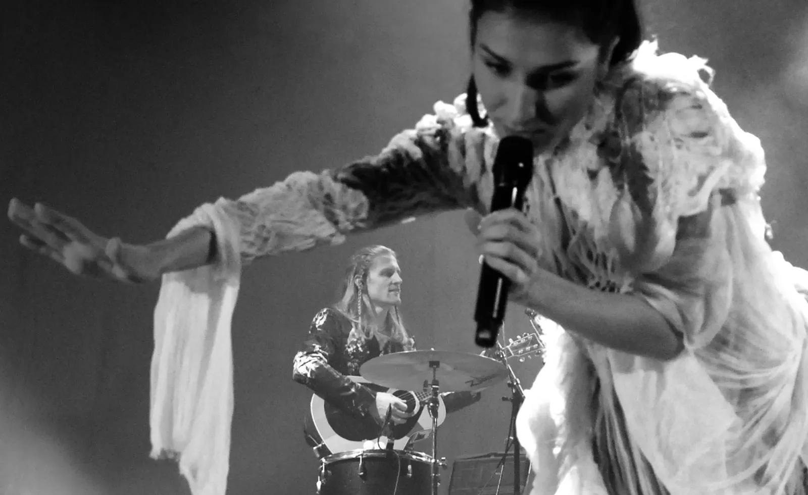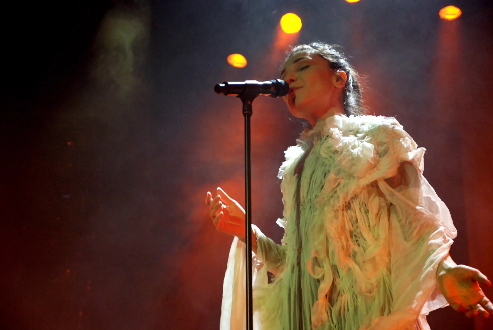 Som en persisk prinsesse fra ørkenen, i hvit majestetisk flagrende kjole, kommer Laleh ut til taktfast klapp fra sitt eget storband til låta Elephant fra skiva Sjung. "..from the desert I`ve grown.."