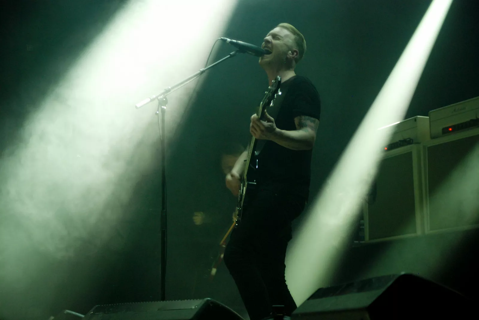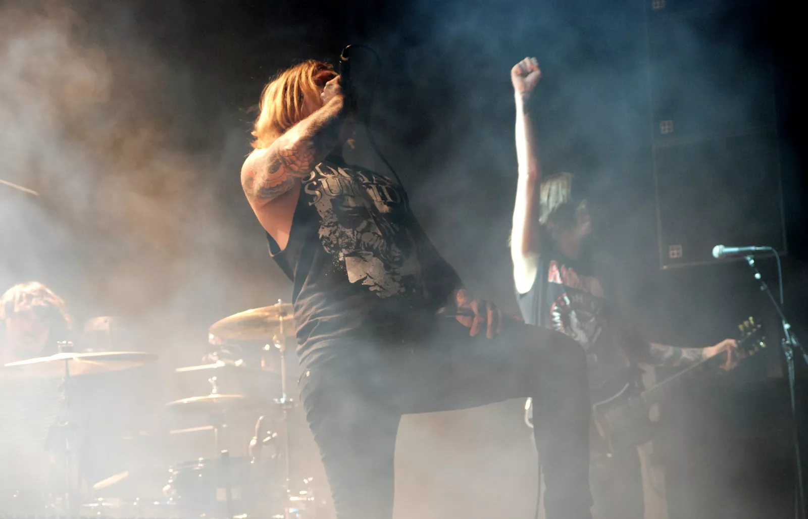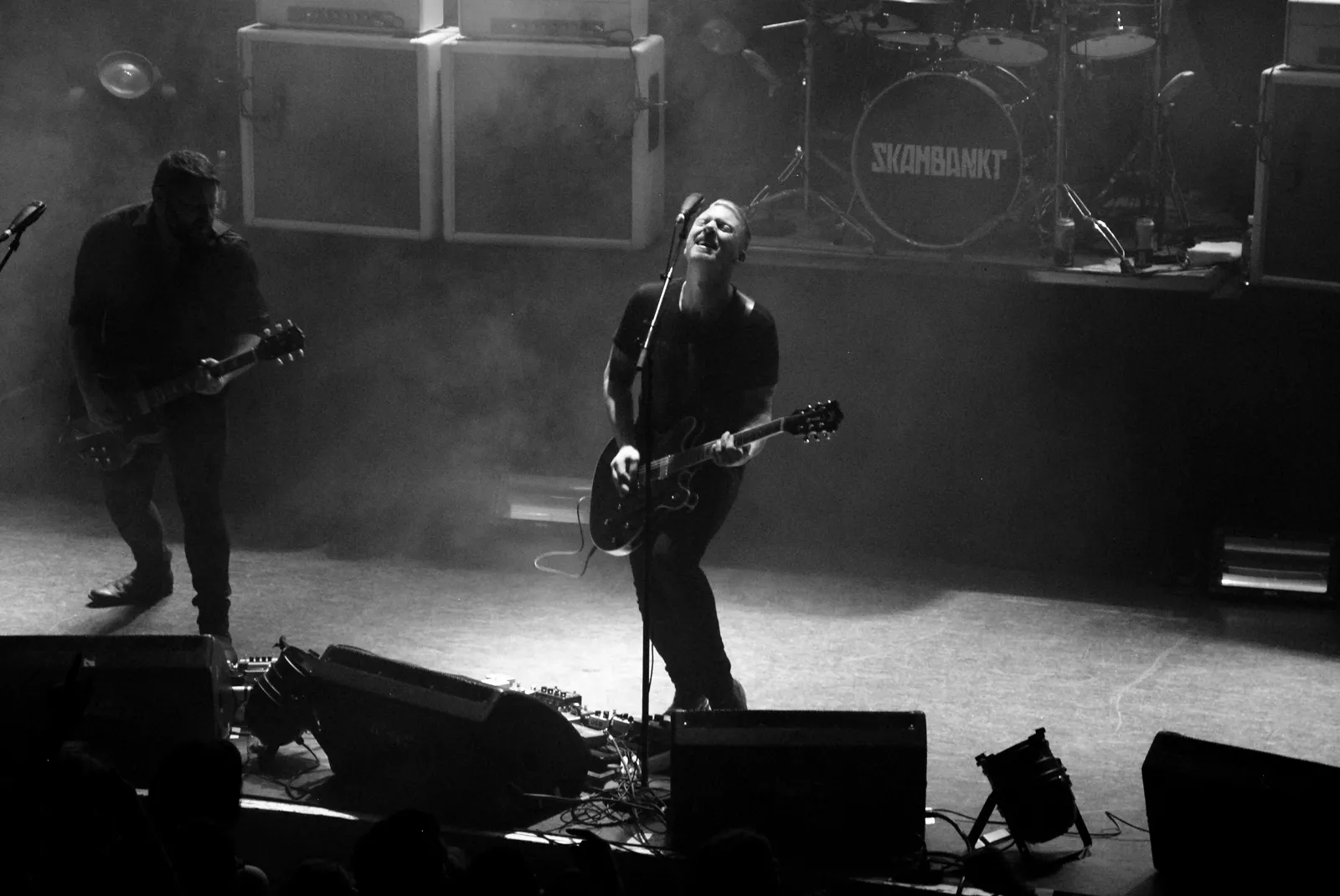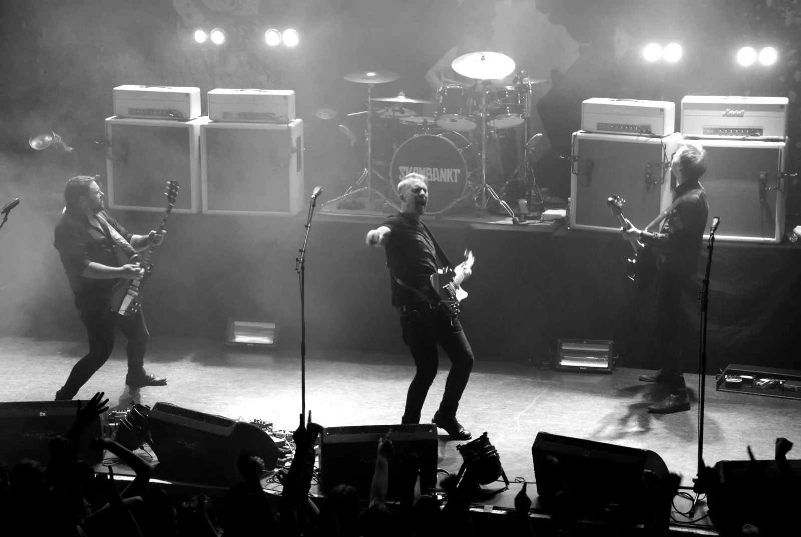 Skambankt gikk på scenen litt over ti med den feteste backdropen vi har sett på lenge og noen elegante hvite Marshall-forsterkere i ryggen. Først ut for kvelden var Anonyme Hatere, et av høydepunktene på Sirene, bandets siste utgivelse. Da jærbuene så fulgte opp med allsangfavoritten