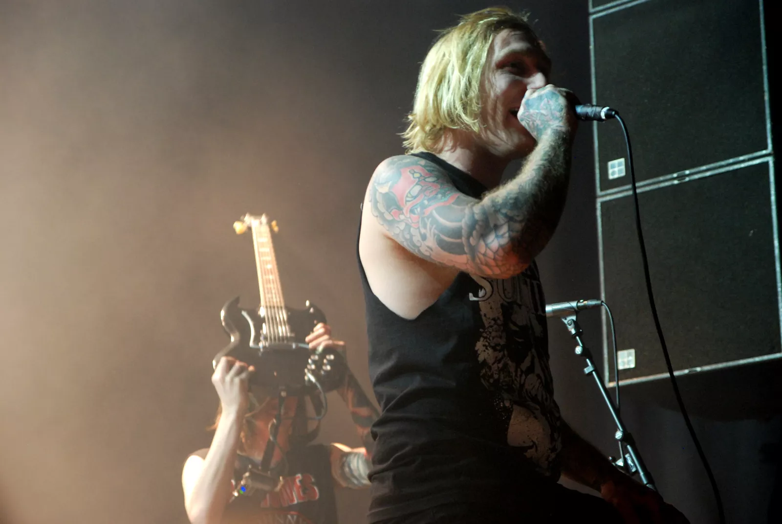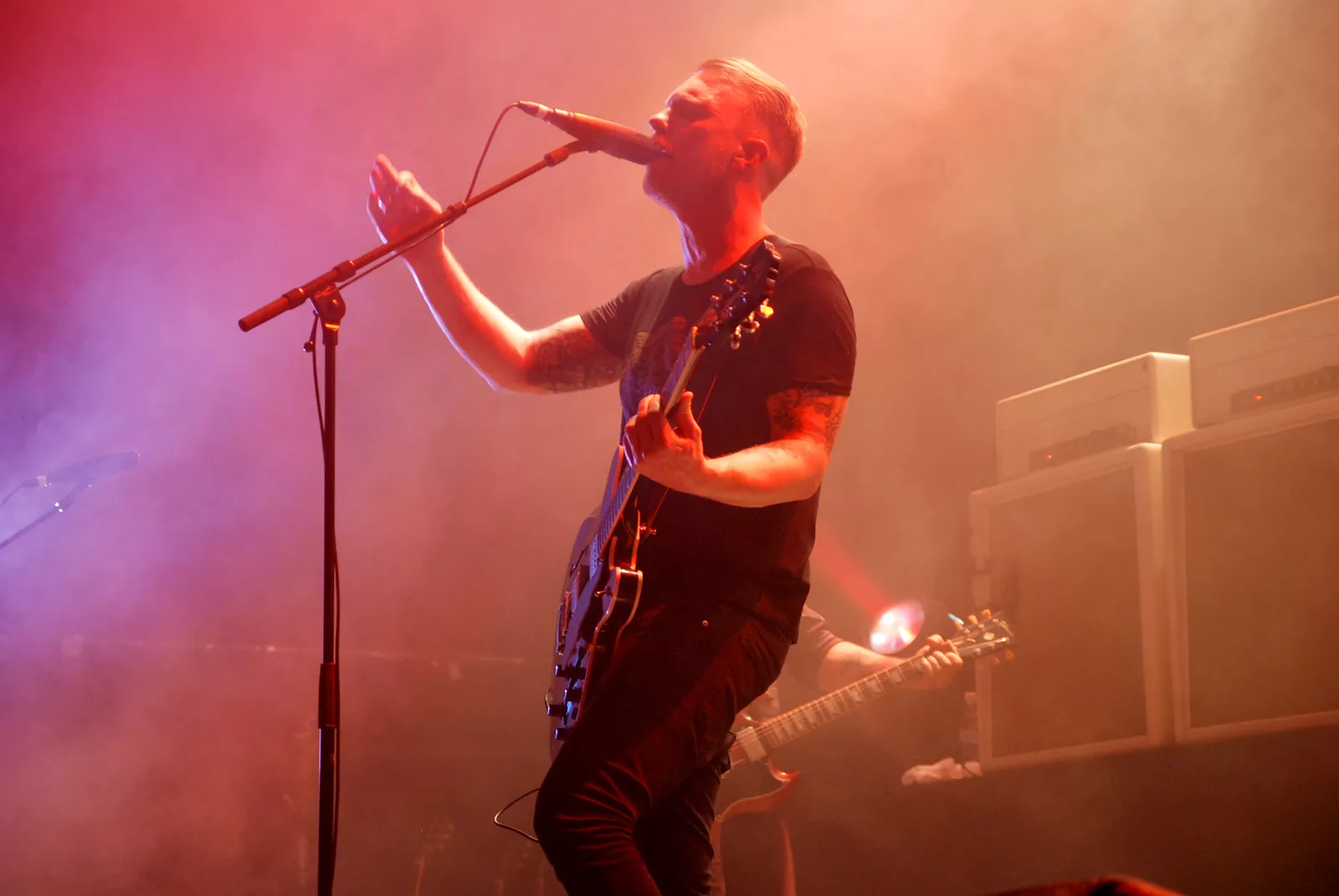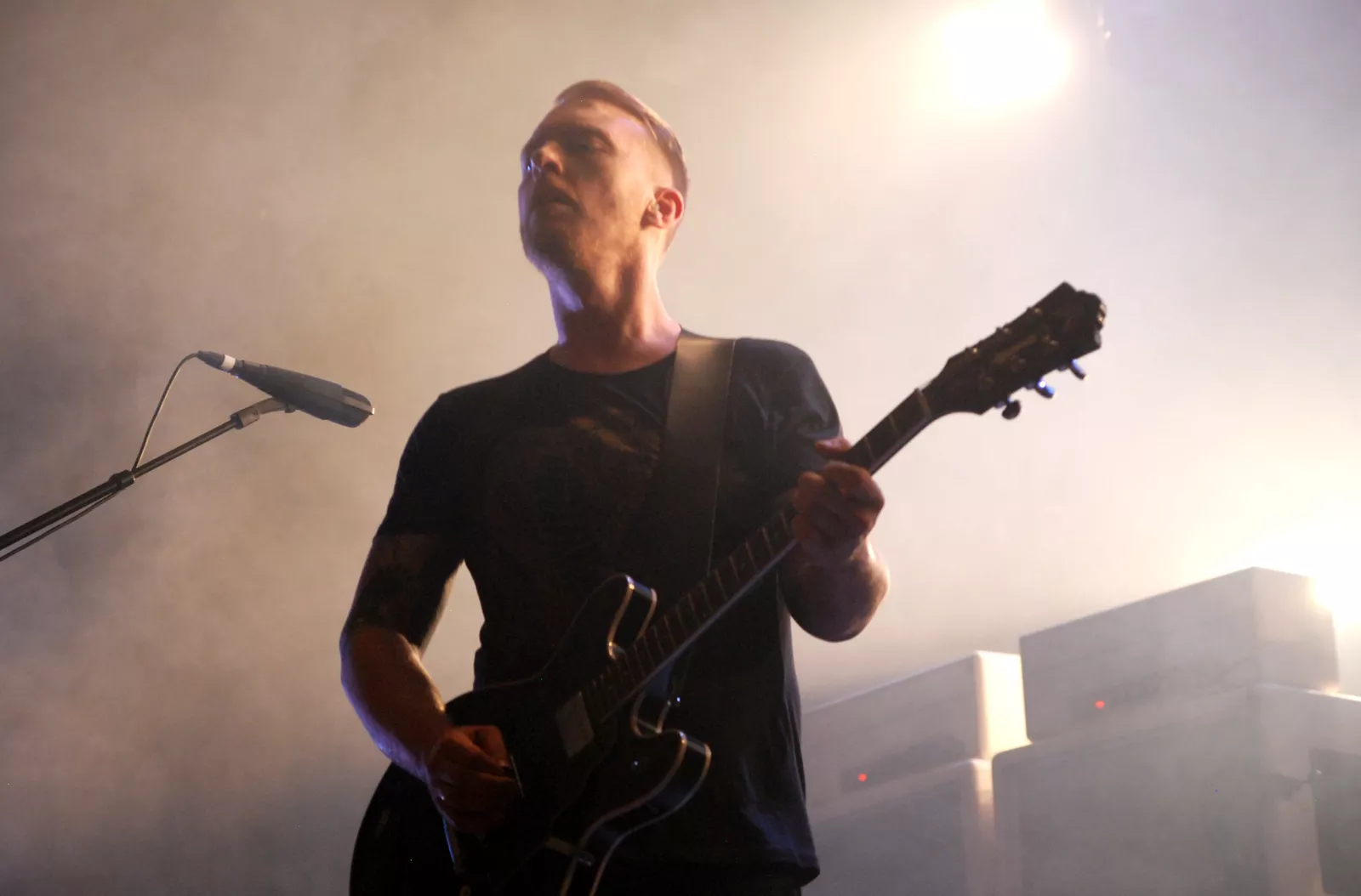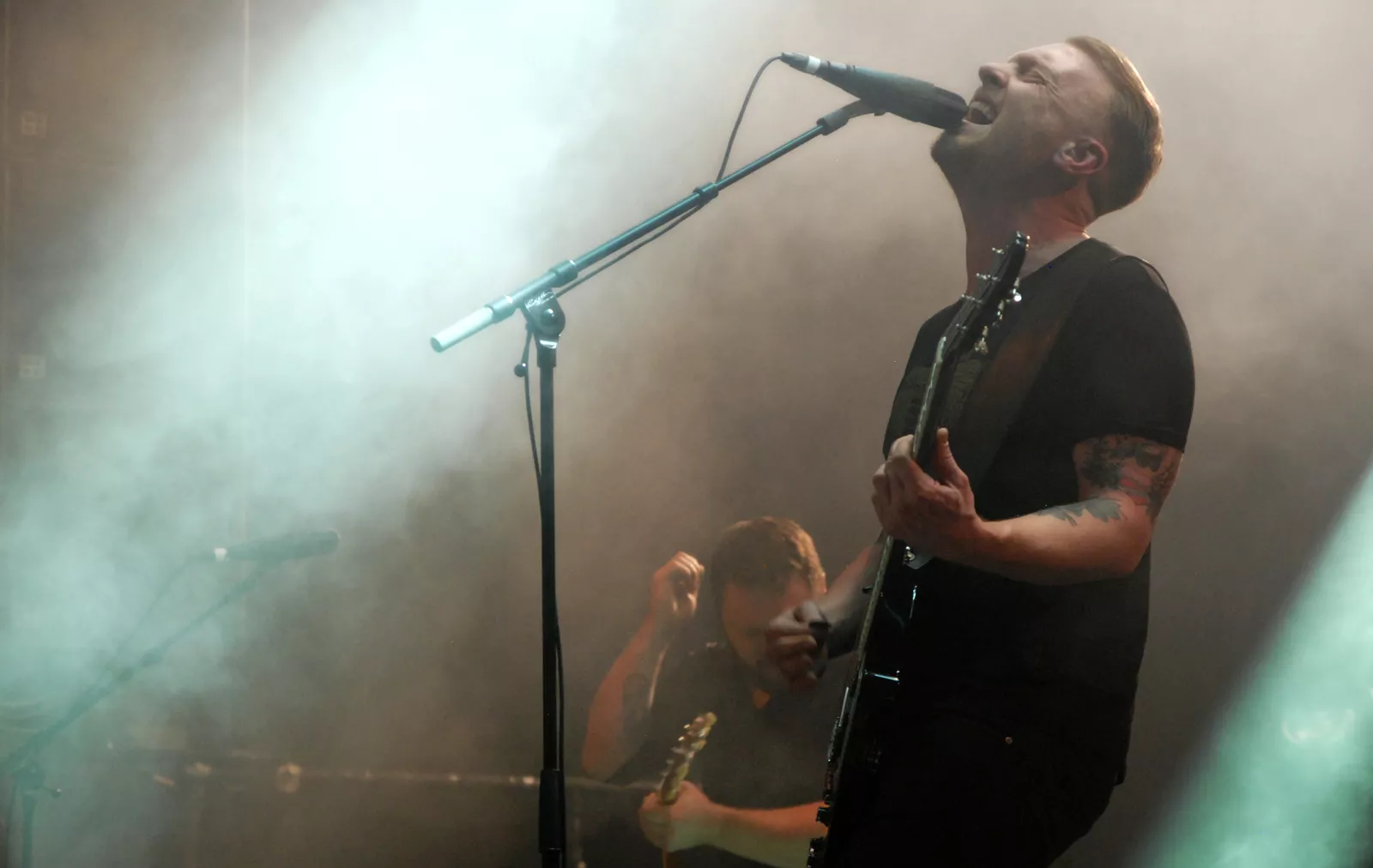 Skambankt gikk på scenen litt over ti med den feteste backdropen vi har sett på lenge og noen elegante hvite Marshall-forsterkere i ryggen. Først ut for kvelden var Anonyme Hatere, et av høydepunktene på Sirene, bandets siste utgivelse. Da jærbuene så fulgte opp med allsangfavoritten
