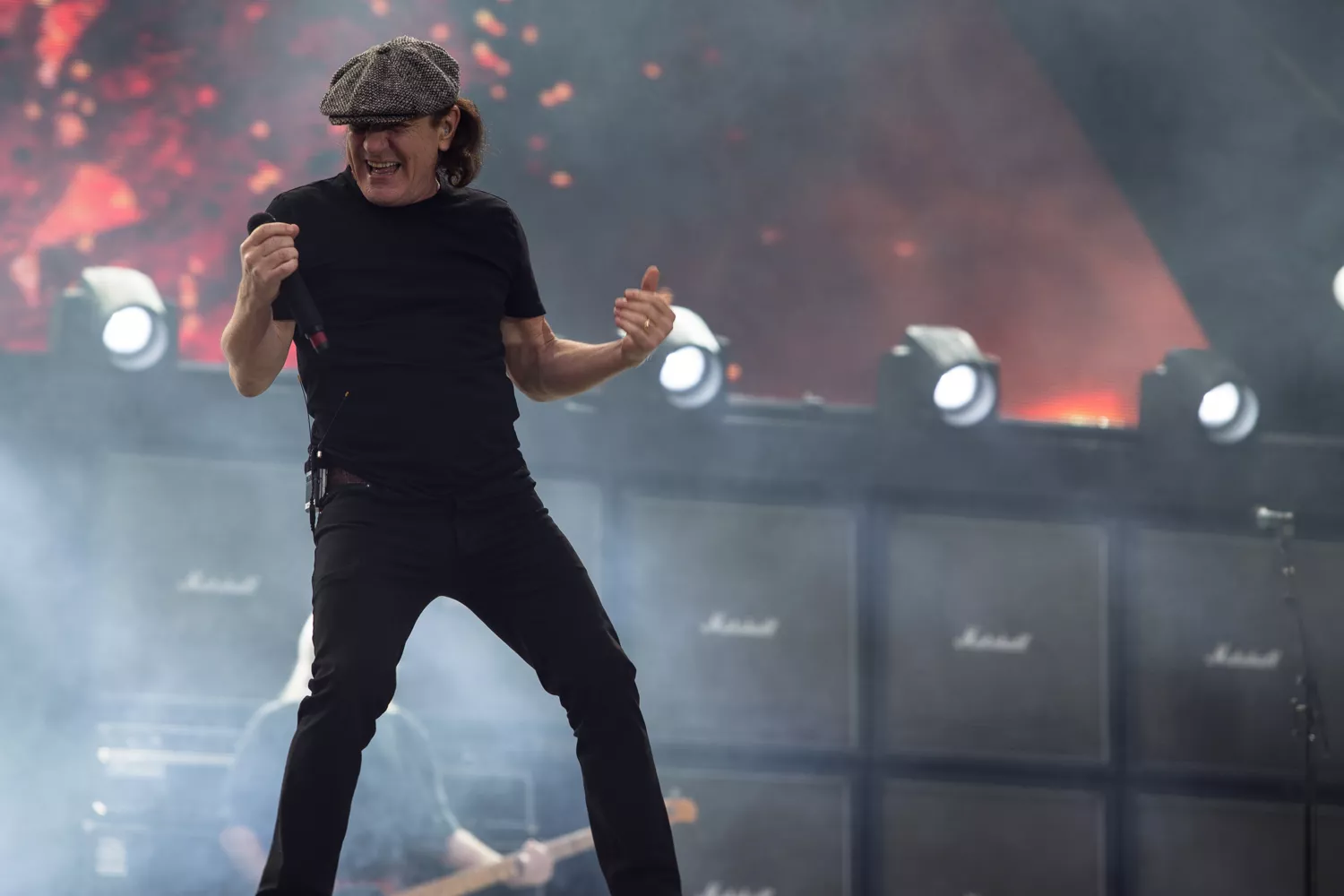 Scenen er grandios og det hersker liten tvil om at det er et stort apparat og mye penger som ligger bak en konsert med rockelengendene i AC/DC. Et titalls busser og lastebiler sto parkert utenfor Vallhall arena, alle like, alle svarte. Plutselig høres lyder fra scenen, og gjennom skjermene på hver