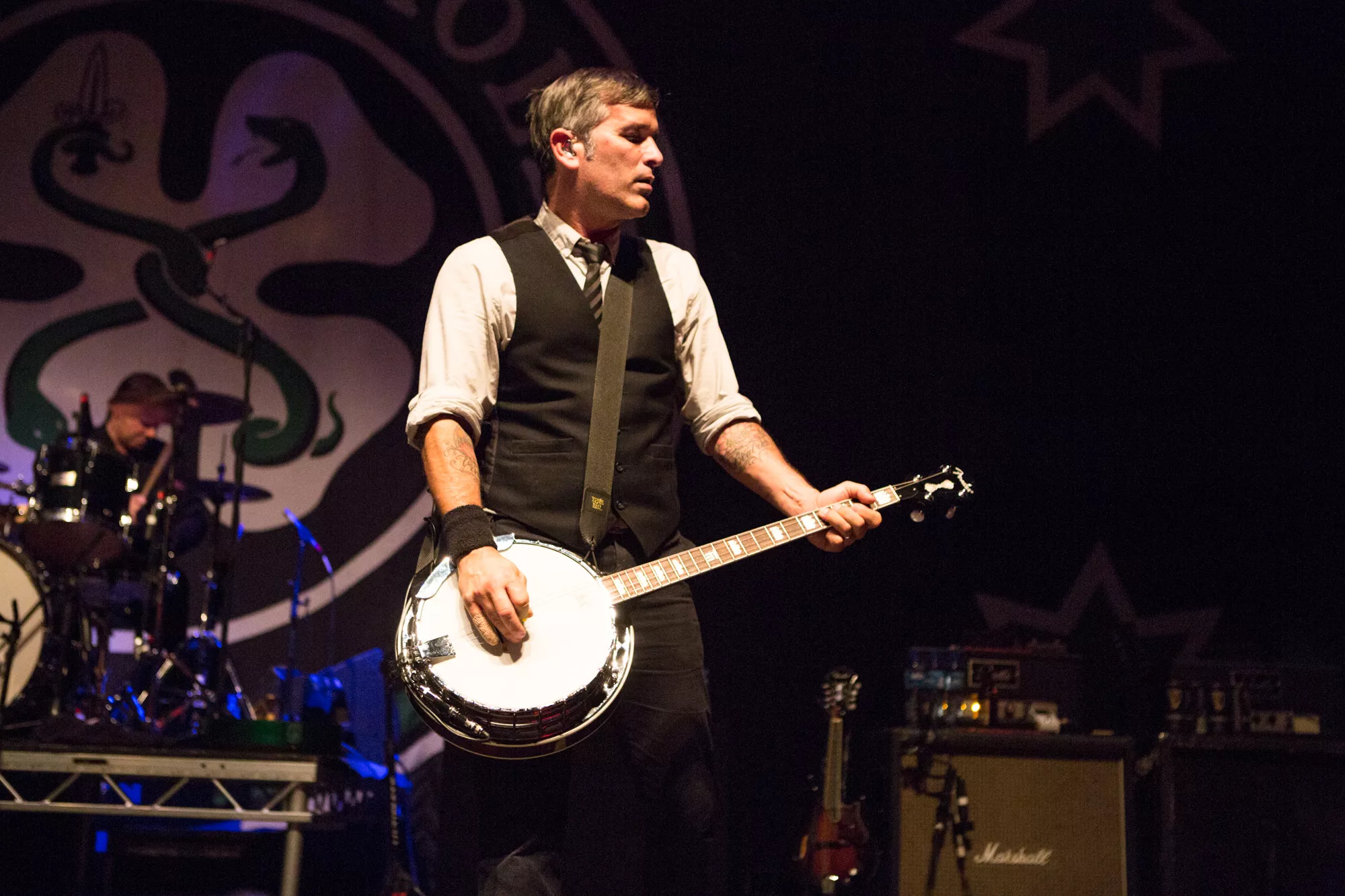 Det amerikanske punk-bandet Flogging Molly, ledet an av den irske vokalisten Dave King, var sist på Sentrum Scene i 2011, samme år som utgivelsen av Speed Of Darkness. I går var de tilbake for å ta opp igjen tilstandene de er så gode på å skape: Fest,