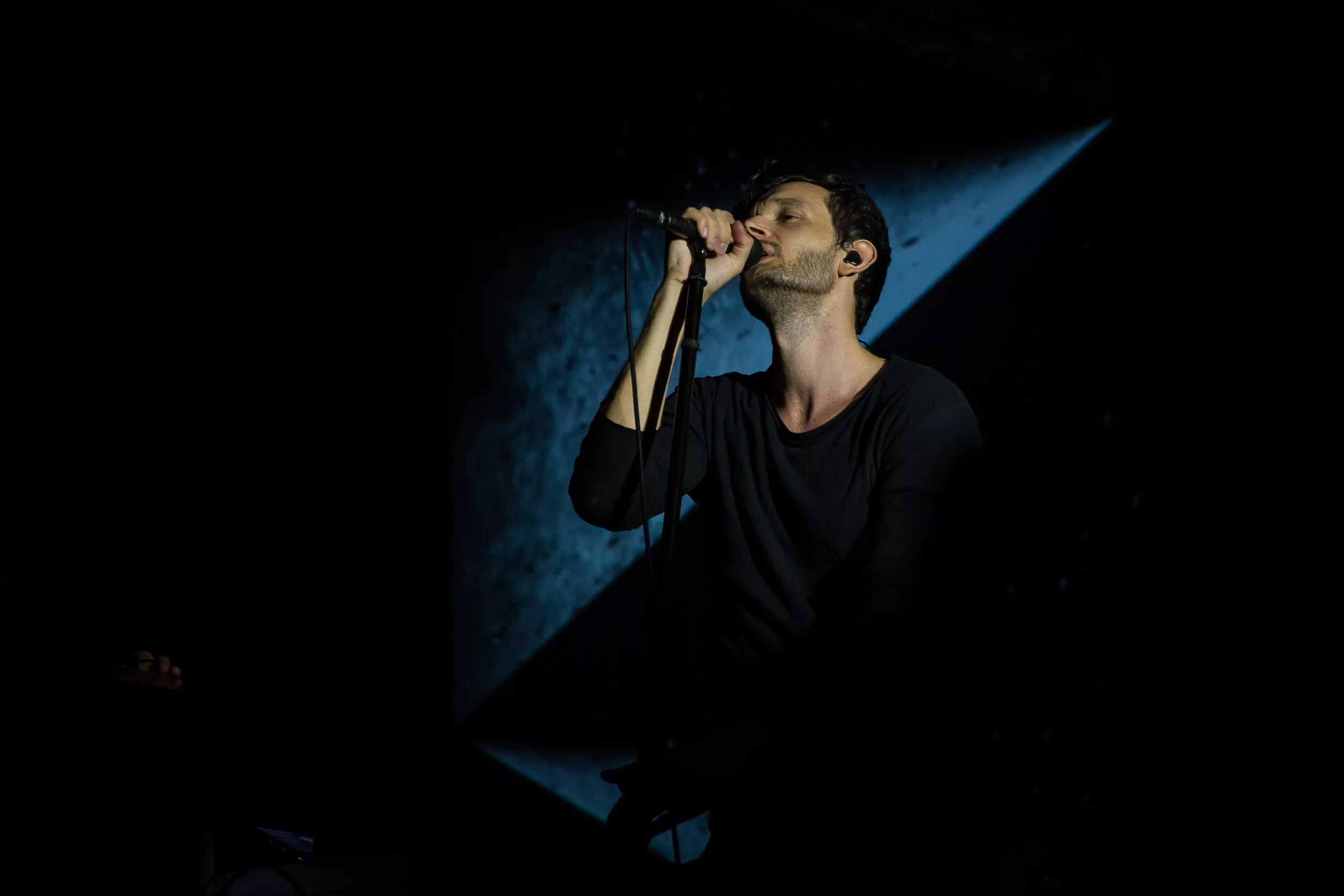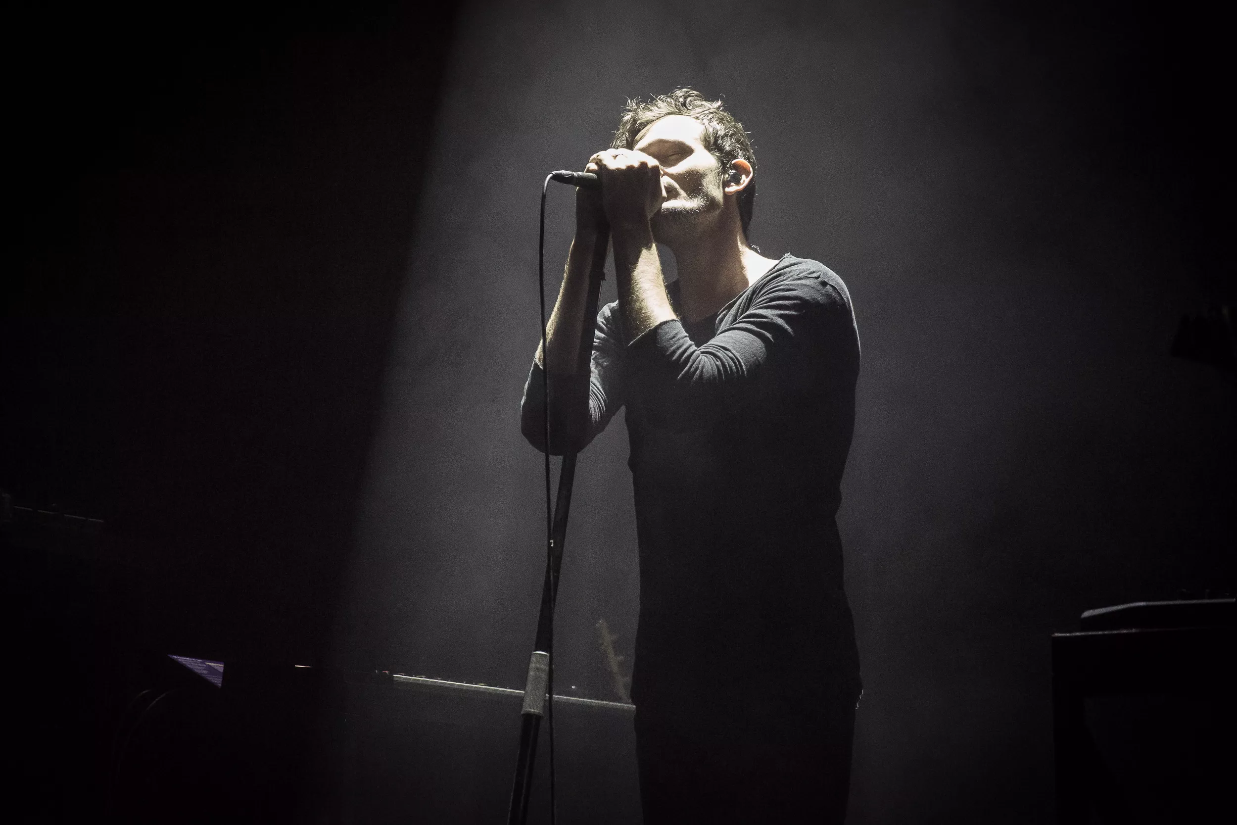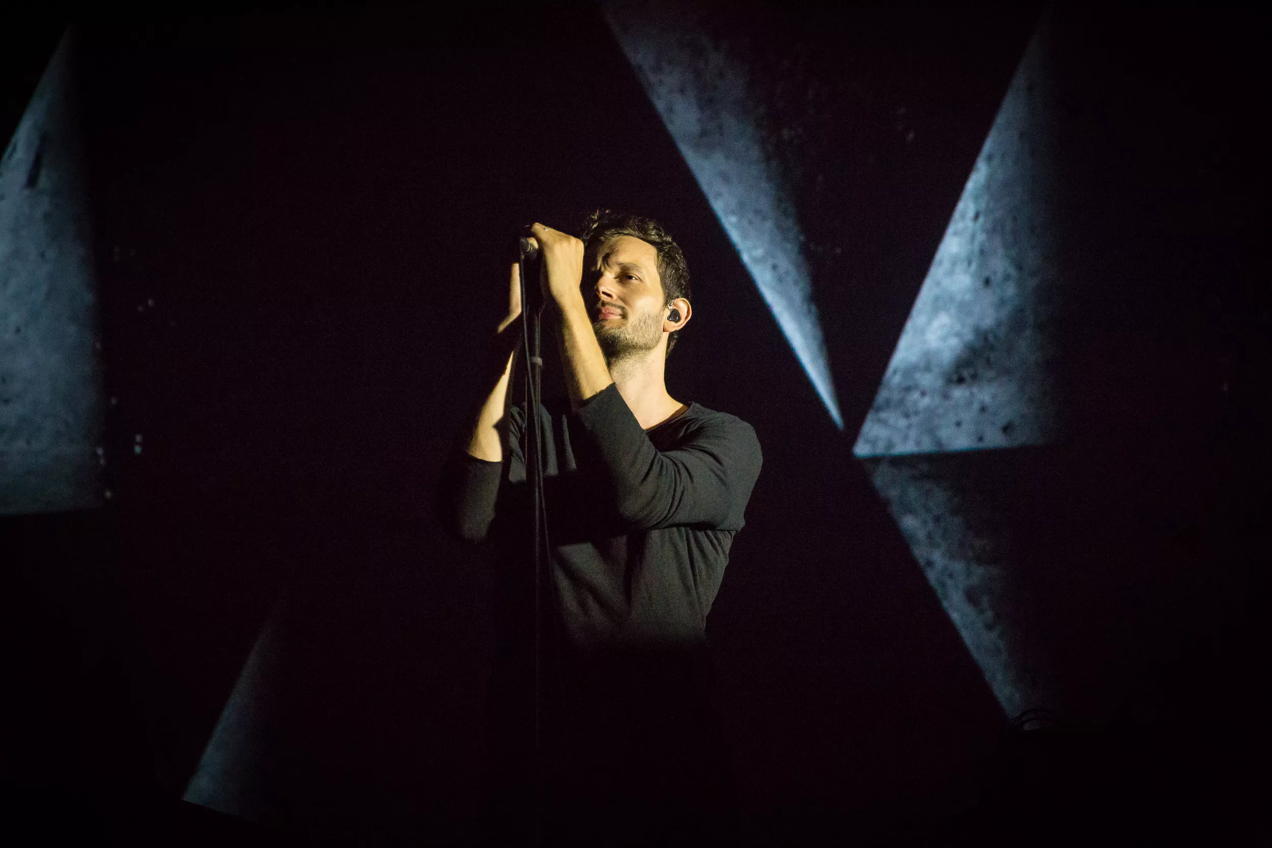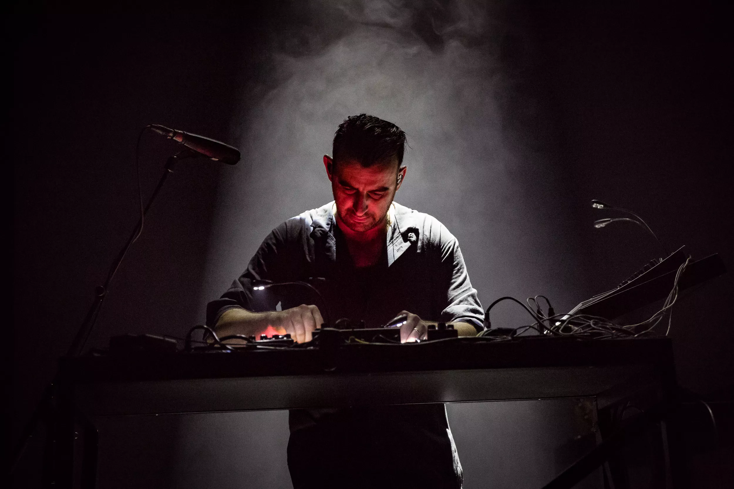 Sentrum Scene er smekkfullt av festglade mennesker når de berlinske elektronika-heltene inntar det mørklagte konsertlokalet. ’’Moderat is a very dark show. For everyone’s enjoyment please do not use any kind of flash or light for filming. Enjoy the show!’’
