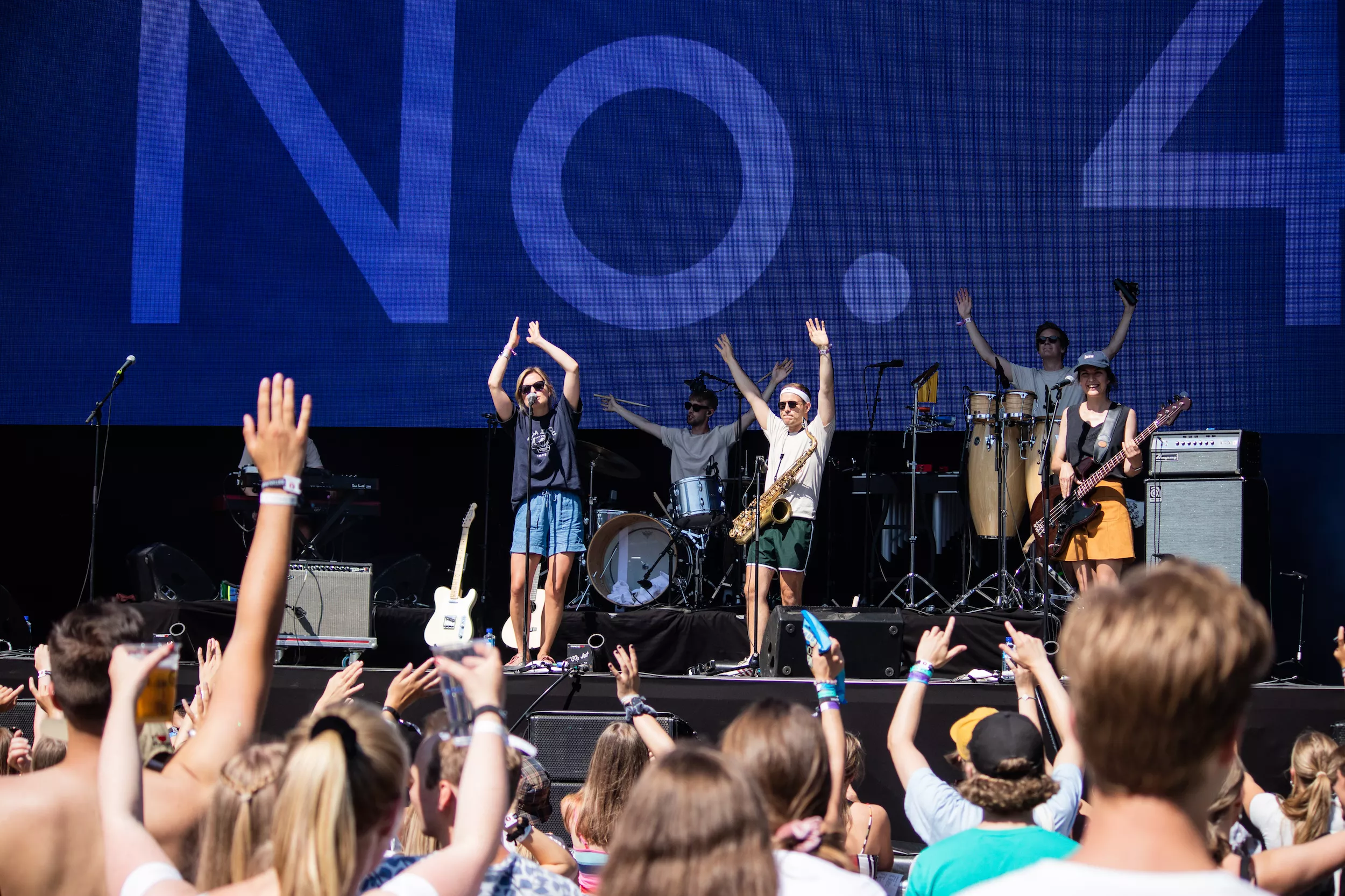 På det som virker som en av årets varmeste dager, er det duket for No. 4, som første ut på Kongescenen under årets utgave av Slottsfjell. Det er kun de ivrigste som har klart å klatre seg opp de bratte trappene inn på festivalområdet så tidlig