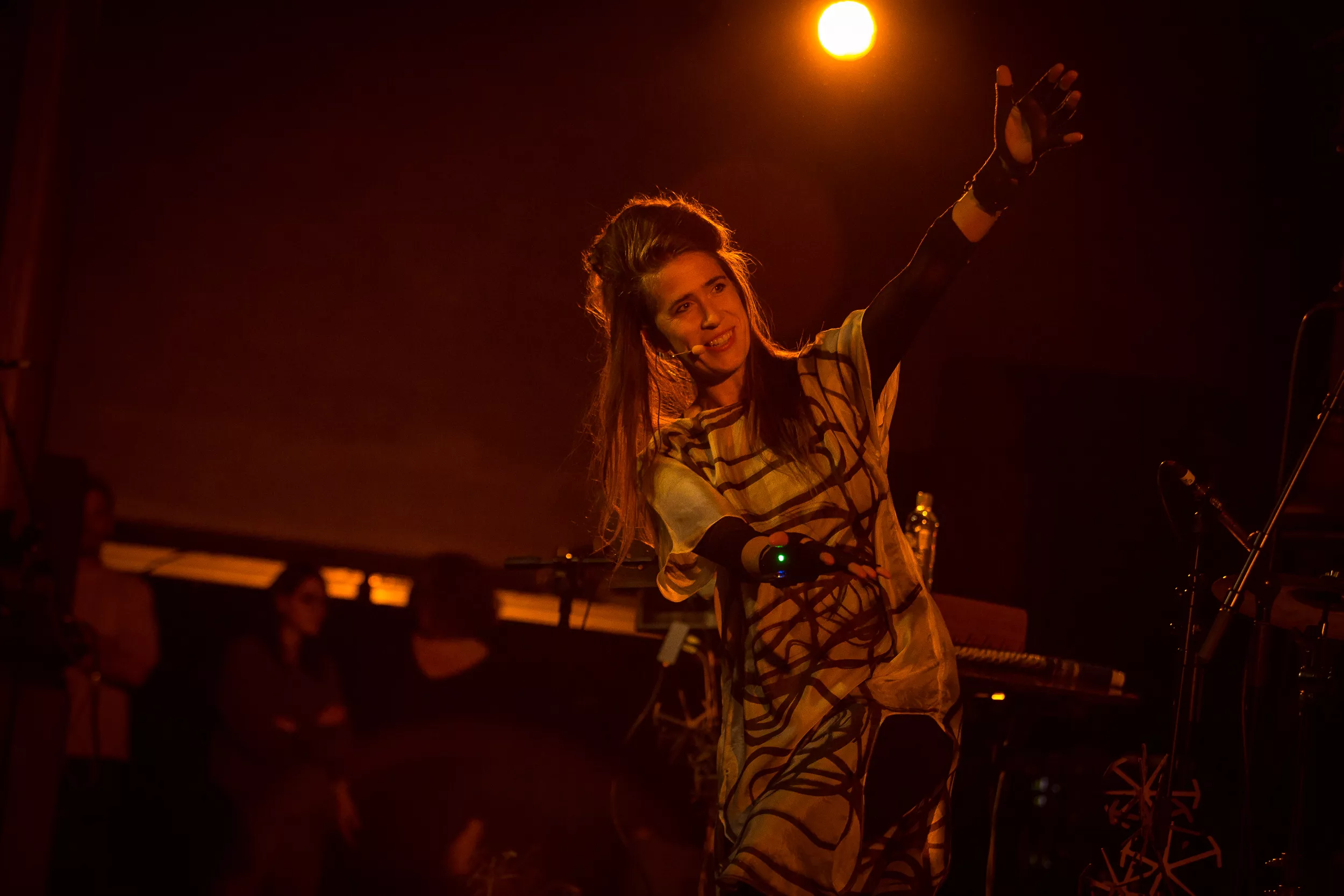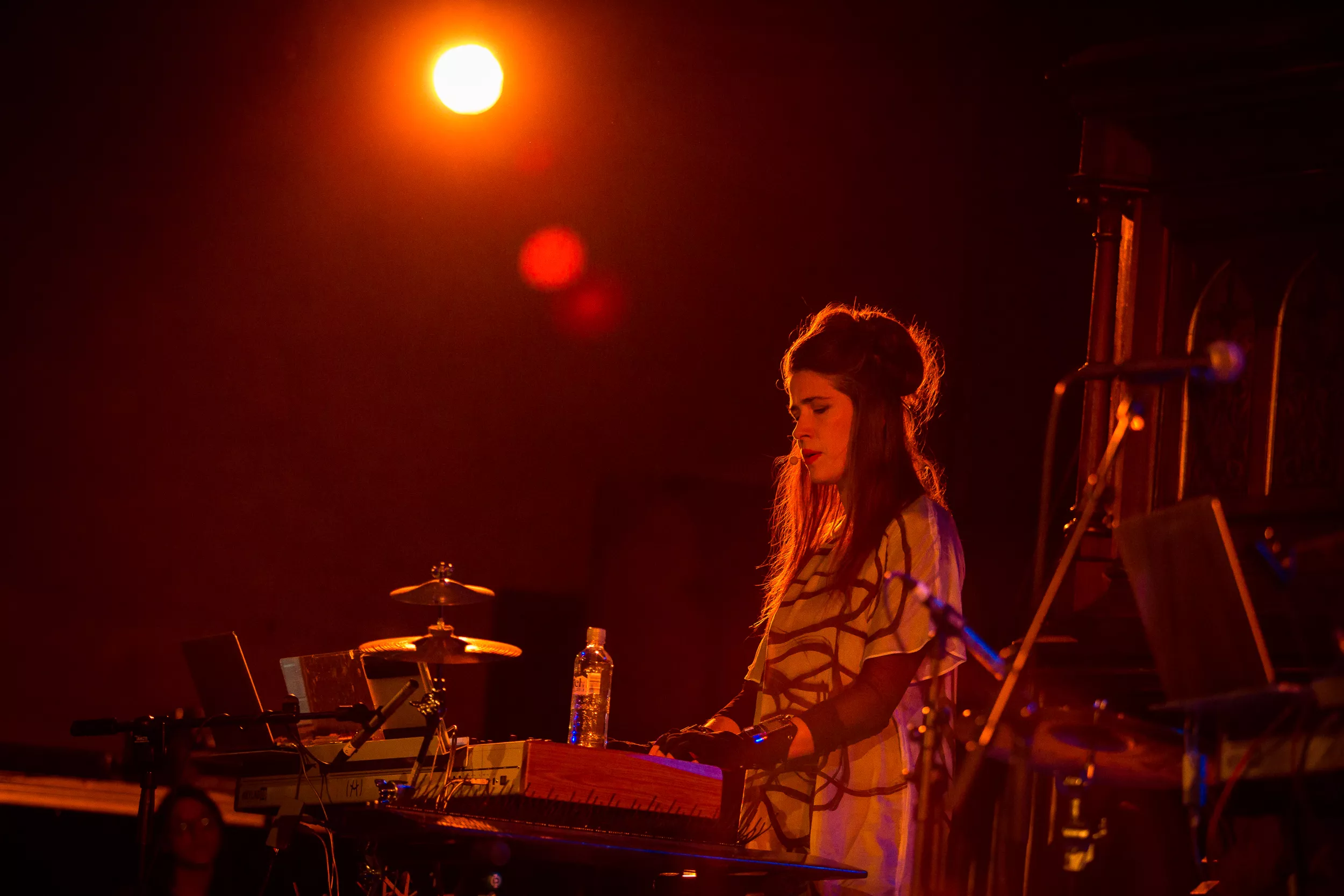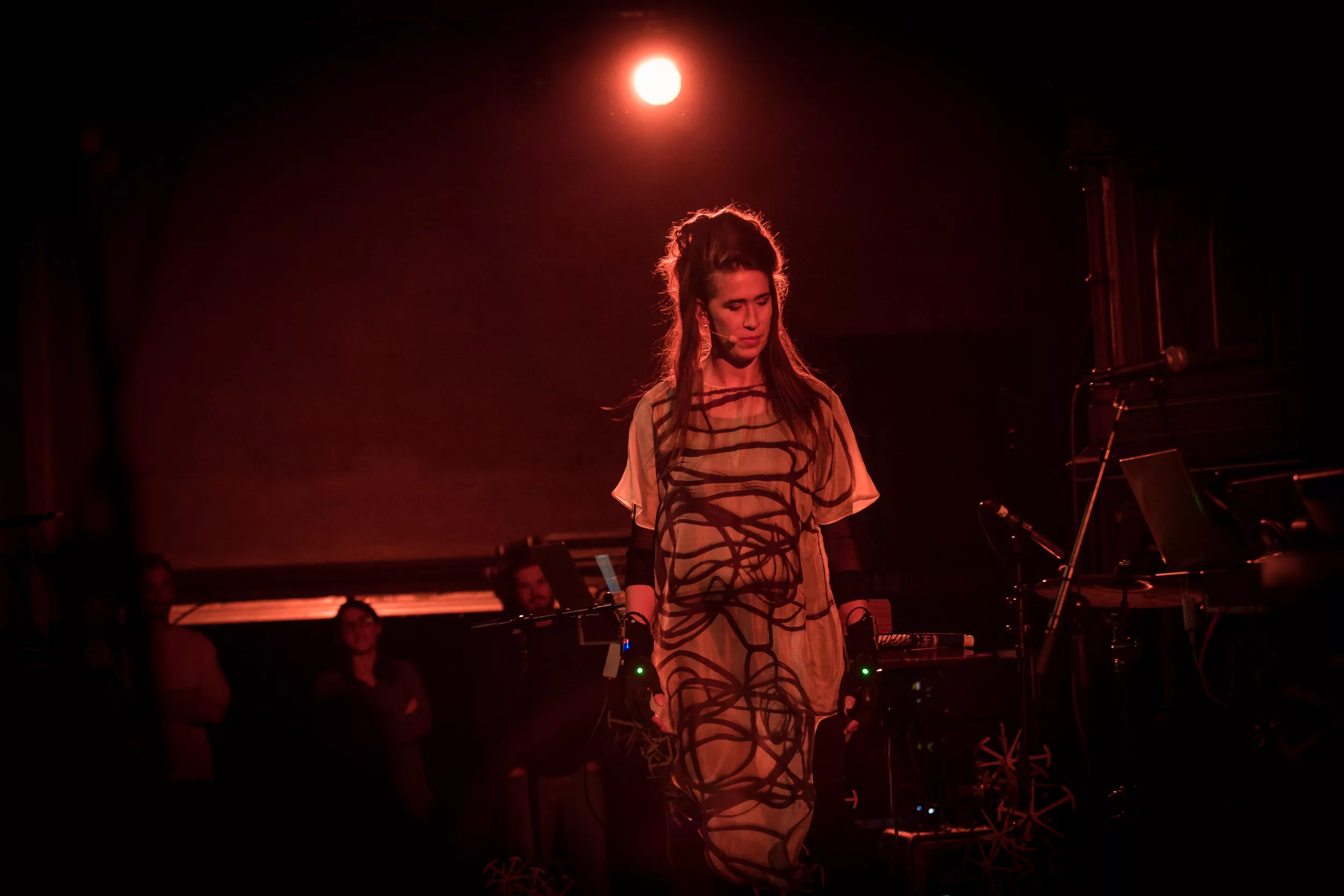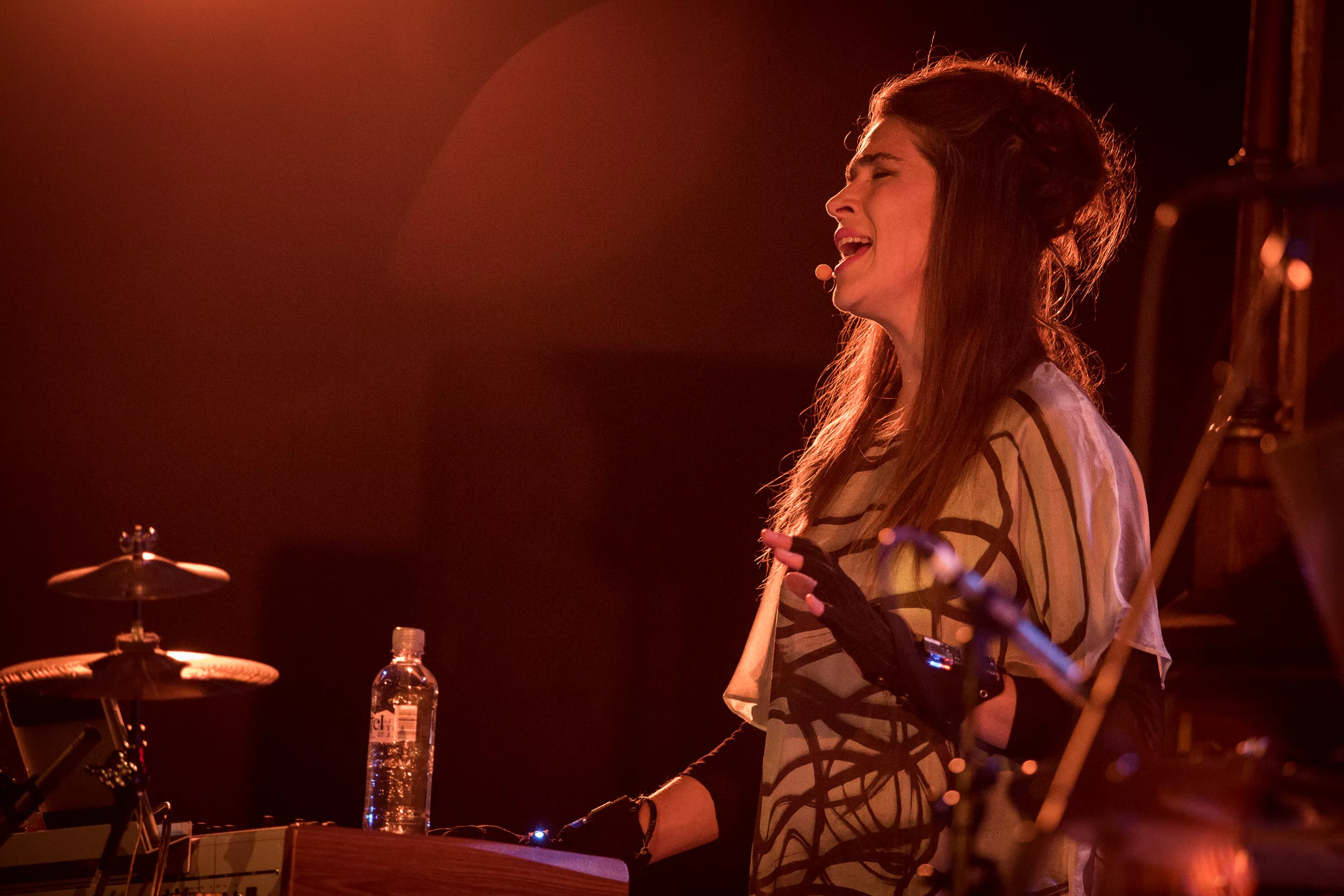 Facebook-eventen inviterte oss til det de kaller et show i Kulturkirken Jakob, hvor vi møter en scene full av ledninger, synthesizers og datamaskiner med eple-logoer. Den britiske musikeren Imogen Heap entrer scenen sammen med Guy Sigsworth, som sammen danner duoen Frou Frou, samt ytterligere