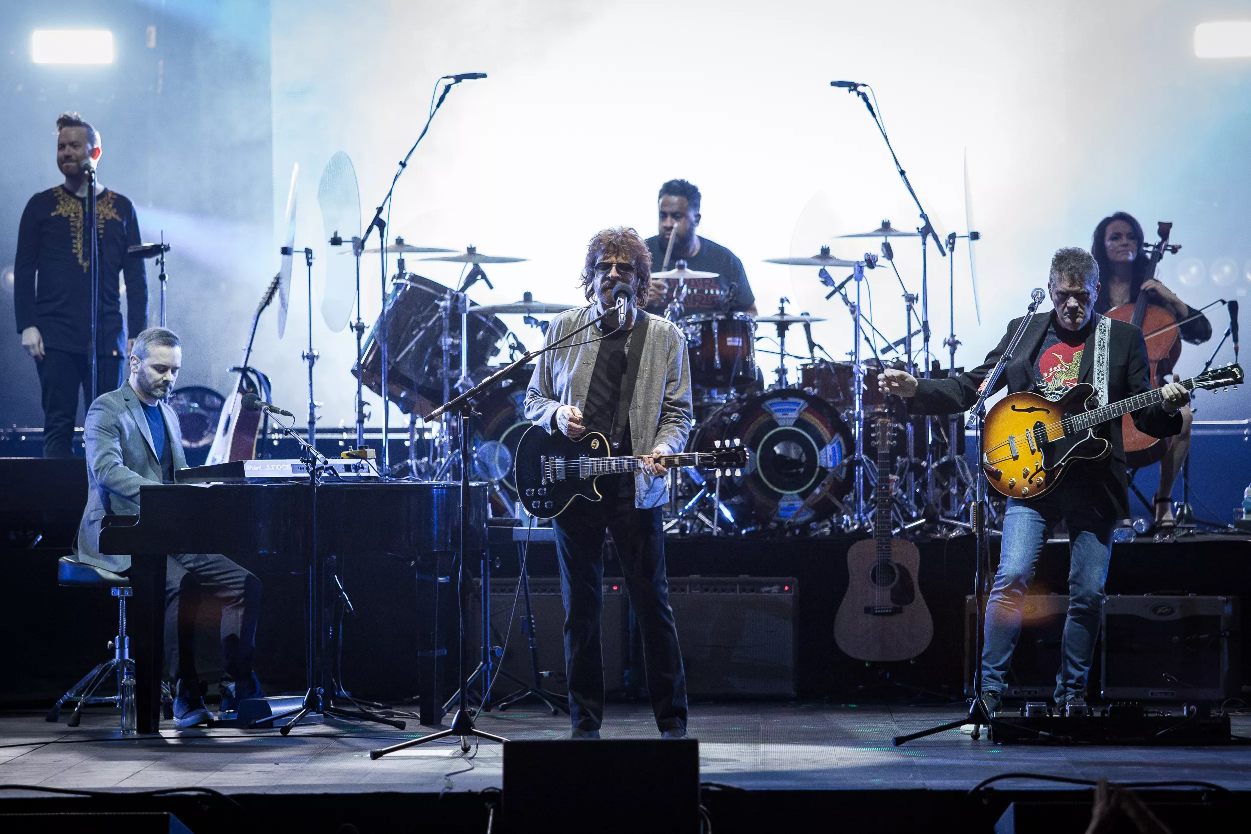 Det kunne dermed blitt et antiklimaks når en reservert Jeff Lynne åpner showet med symfoniske Standin’ In The Rain. Heldigvis er det musikalske på plass, og bandet veier nesten opp for hovedpersonens noe manglende karisma. Videre følger Evil Woman som