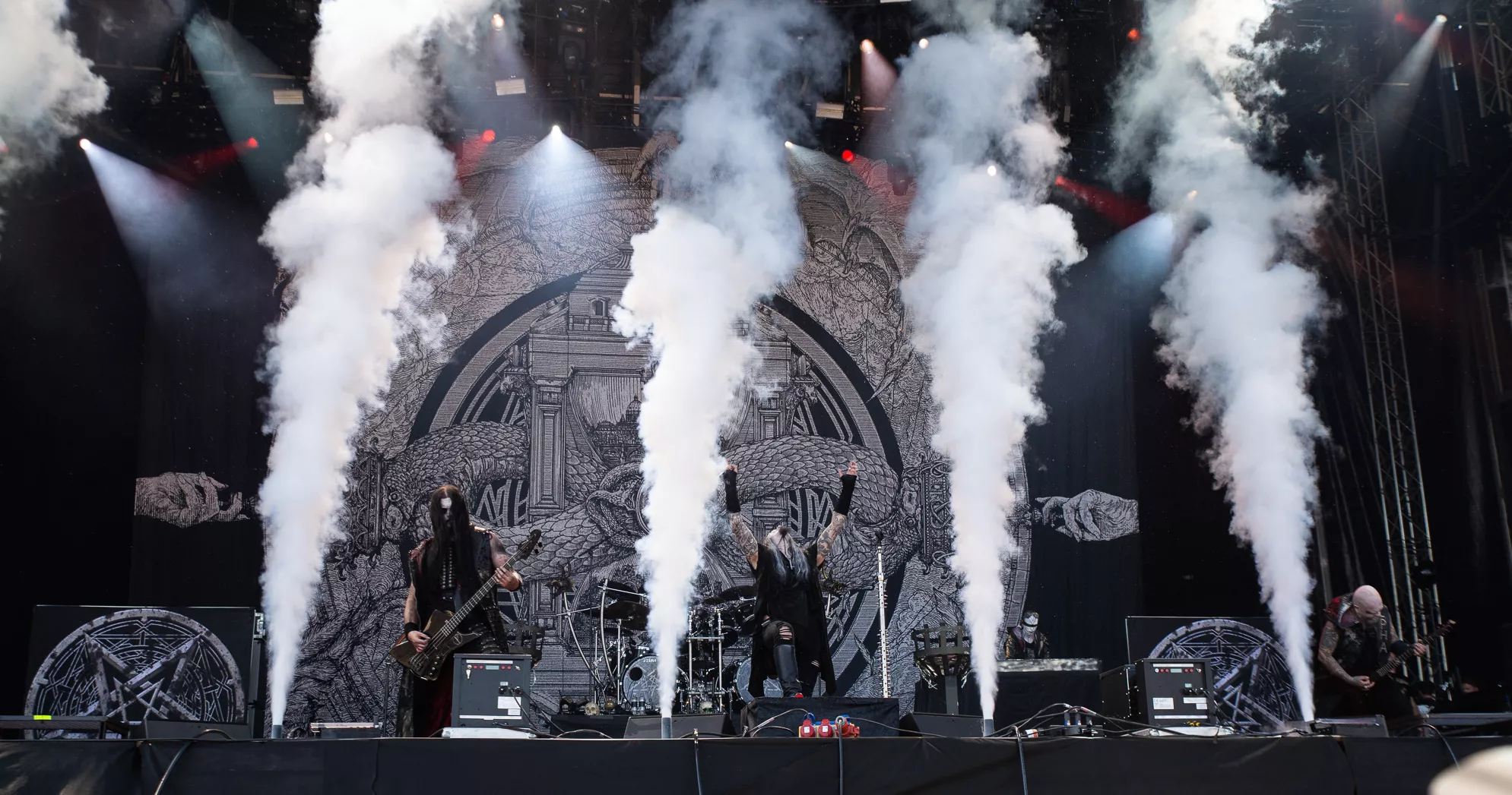 I en sky av sort røyk og strupesang stiger Dimmu Borgir ut i solskinnet på Tons of Rocks hovedscene. Jubelen sitter løst når landets fremste musikalske eksport gjennom de siste 30 årene inntar scenen med den selvtitulerte låten «Dimmu borgir». Vokalist Shagrath, som i sine middelaldrende dager har
