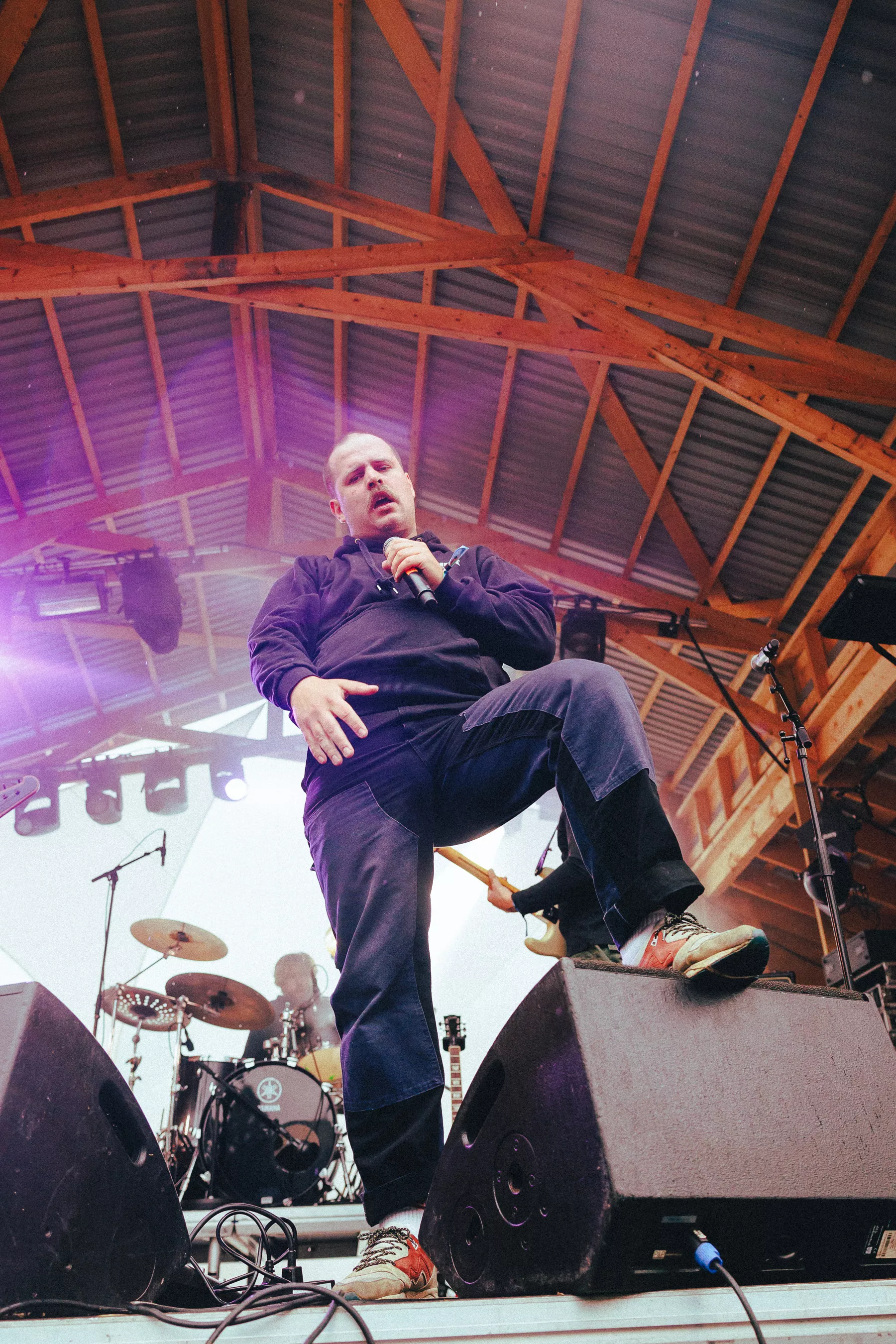 Først av alt, så var oppvarmingen noe utenom det vanlige. Det hele starter med et noe småkleint DJ-sett hvor det spilles basstunge hiphop-klassikere til et intenst lysshow. Deretter entrer komiker/klovn Martin Lepperød scenen, som ikledd morgenkåpe har chuggekonkurranse