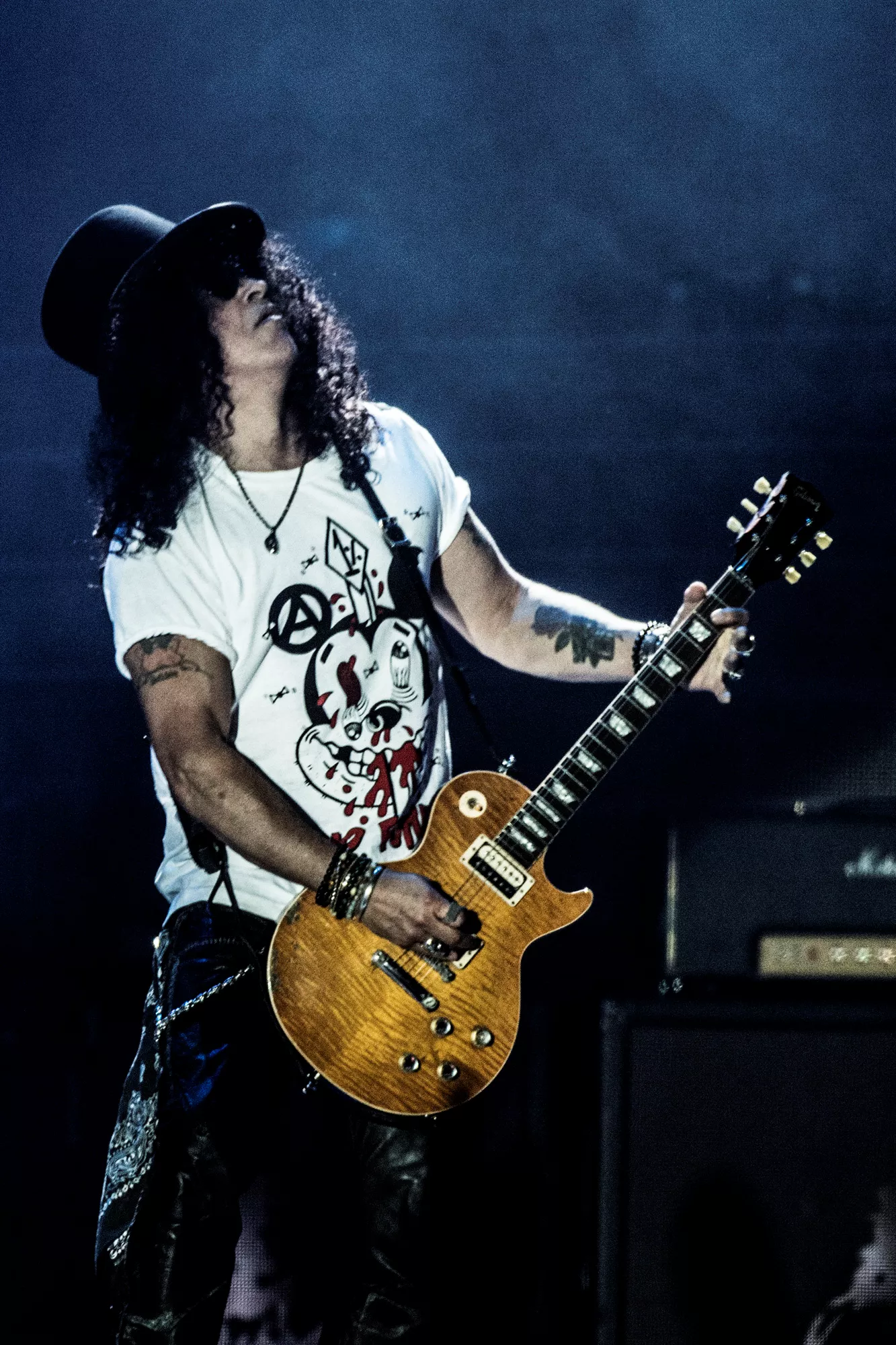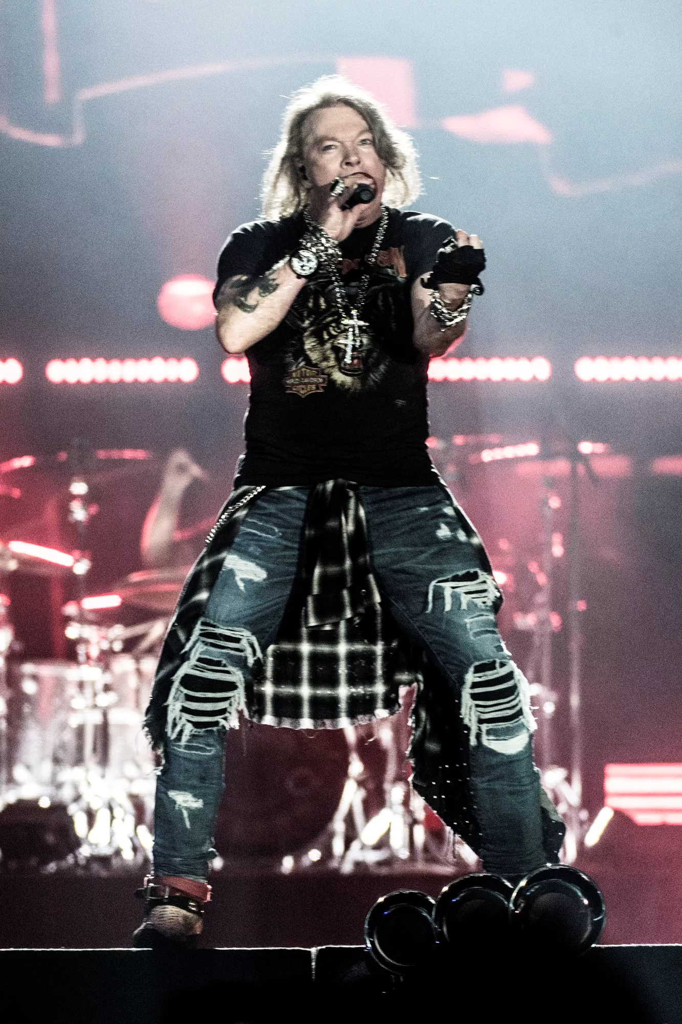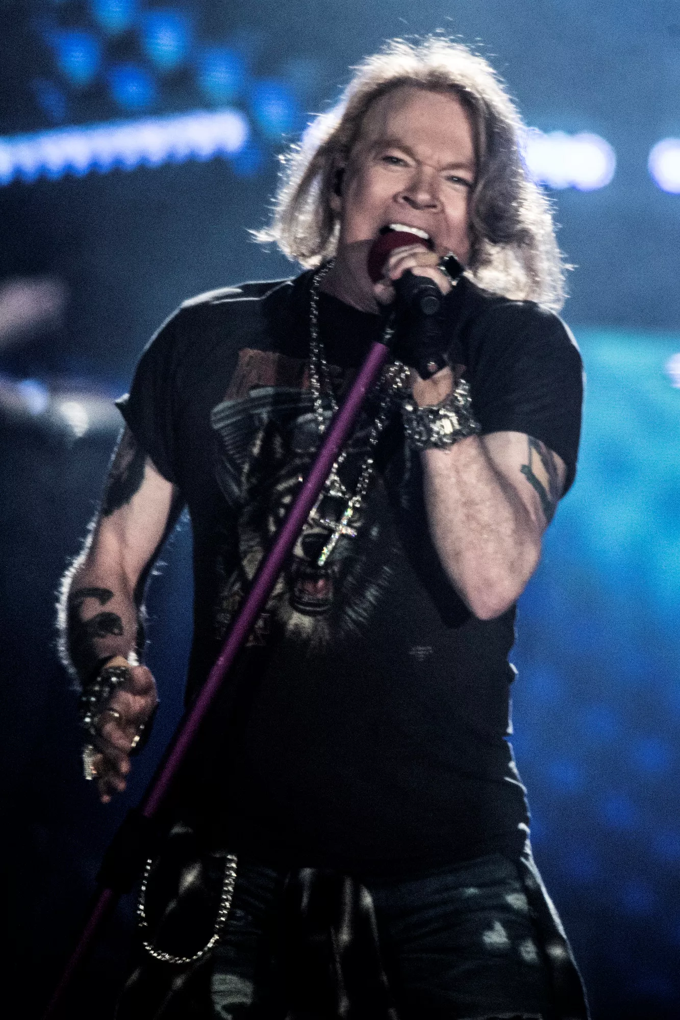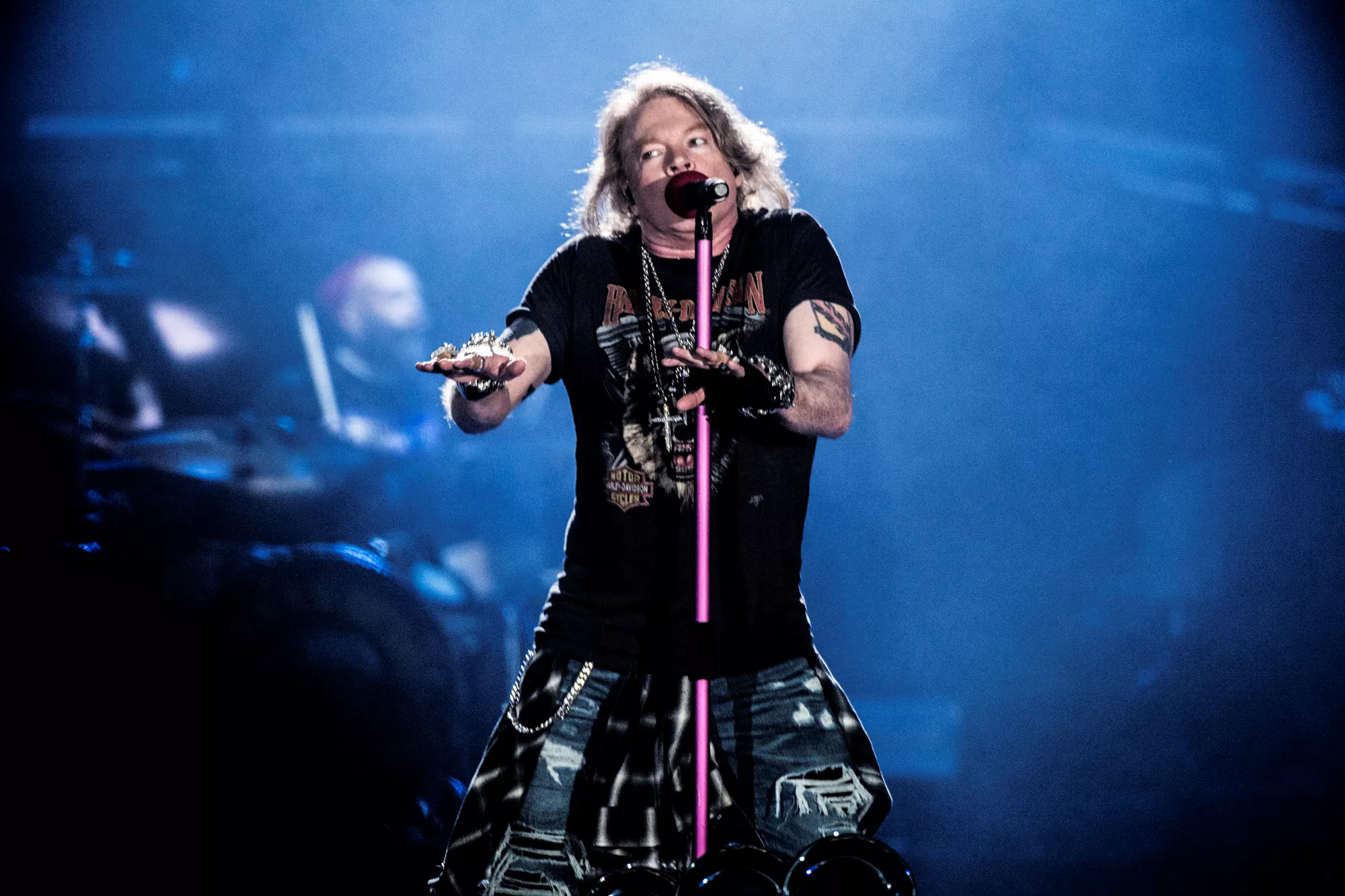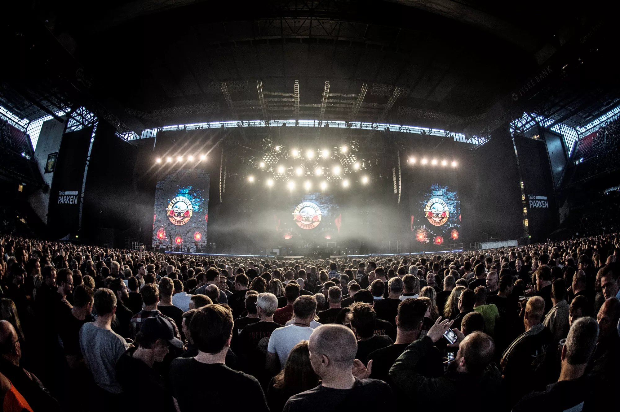 Guns N' Roses tok til scenen foran 48.000 mennesker på Telia Parken i København tirsdag kveld - etter oppvarming fra Backyard Babies og Biffy Clyro.