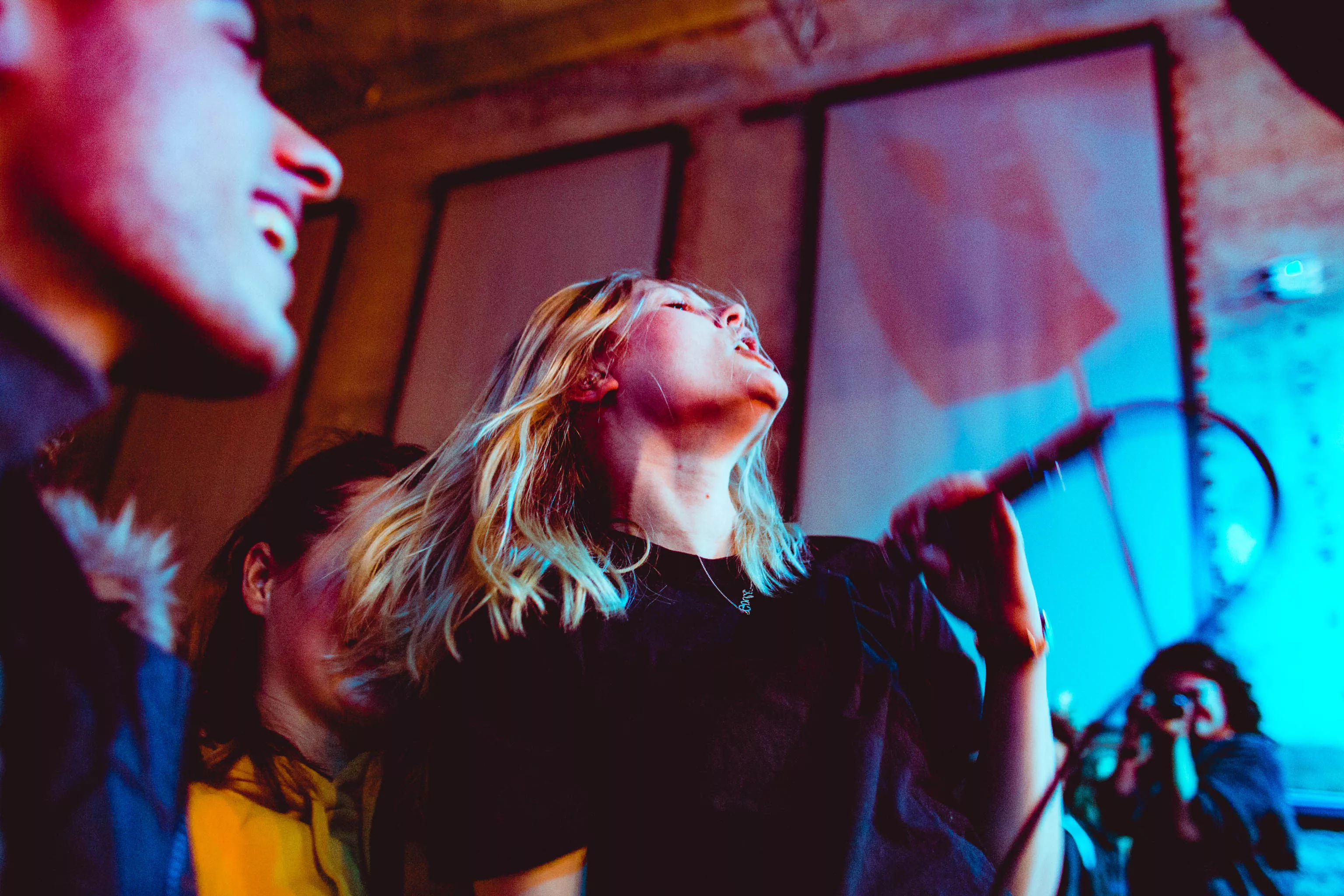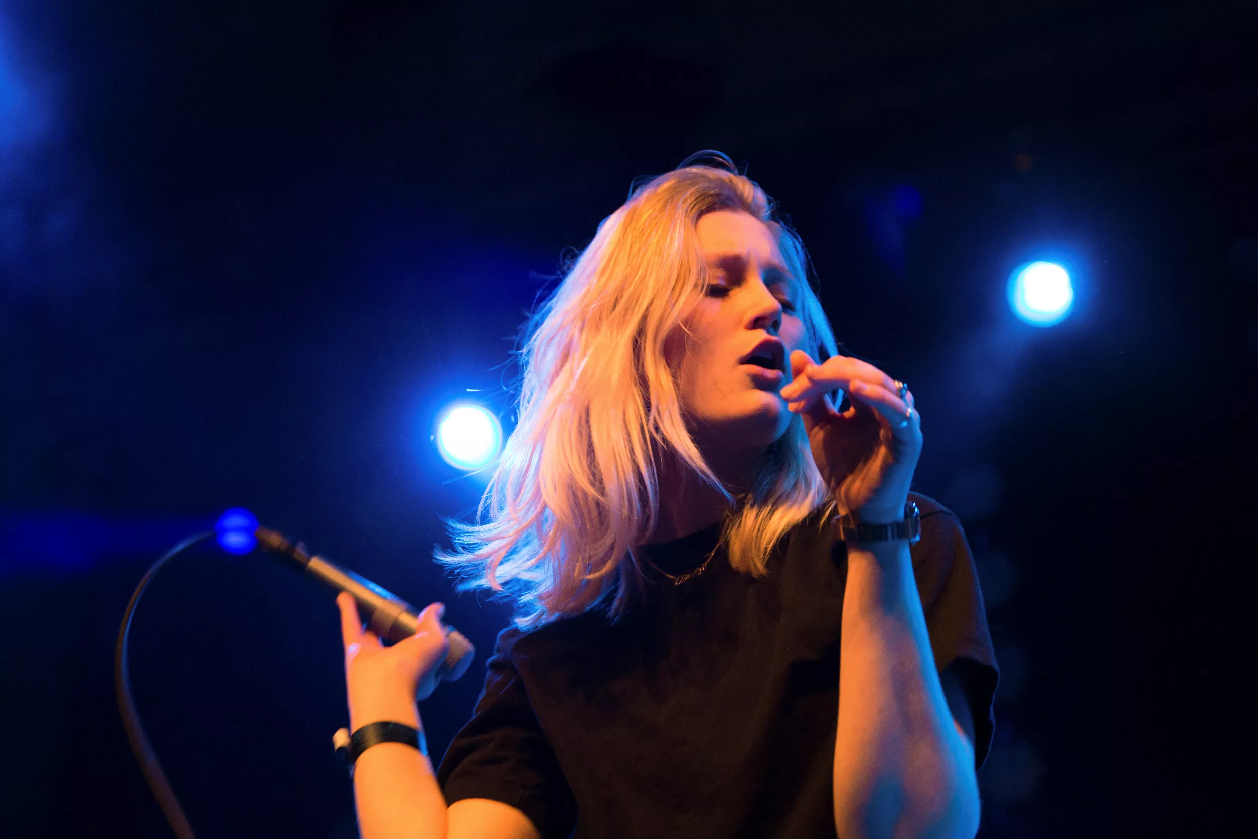 — Det var den følelsen jeg prøvde å fange i mine bilder på DOGA. Noe som i starten var litt vanskelig siden jeg følte at det kjentes mer ekte på scenen enn det mine bilder på kameraet greide å vise. Dette endret seg da vokalist Haley Shea gikk fra å danse på scenen til å stå og synge midt blant publikum som sang tilbake. Jeg hadde ikke tid til å tenke eller reflektere, det var bare å ta bilder og håpe på det beste. Det resulterte i et bilde som kanskje ikke er så teknisk korrekt, men som representerer akkurat det Sløtface er: Et talentfullt, jordnært band med energi og kjærlighet.