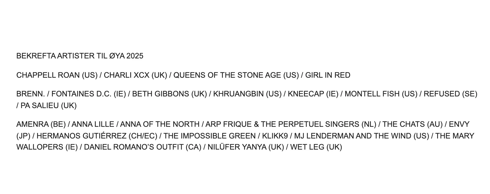 Det skal slippes enda flere navn til Øya 2025 i januar.